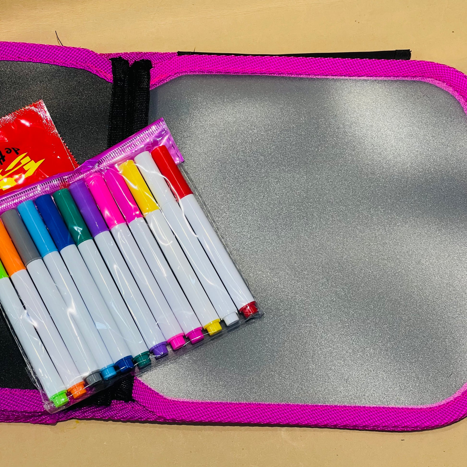 - Includes - Book with 14 Pages, 12 markers, and 2 Wipes. The Wipe and clean features makes the book to be used for infinite times