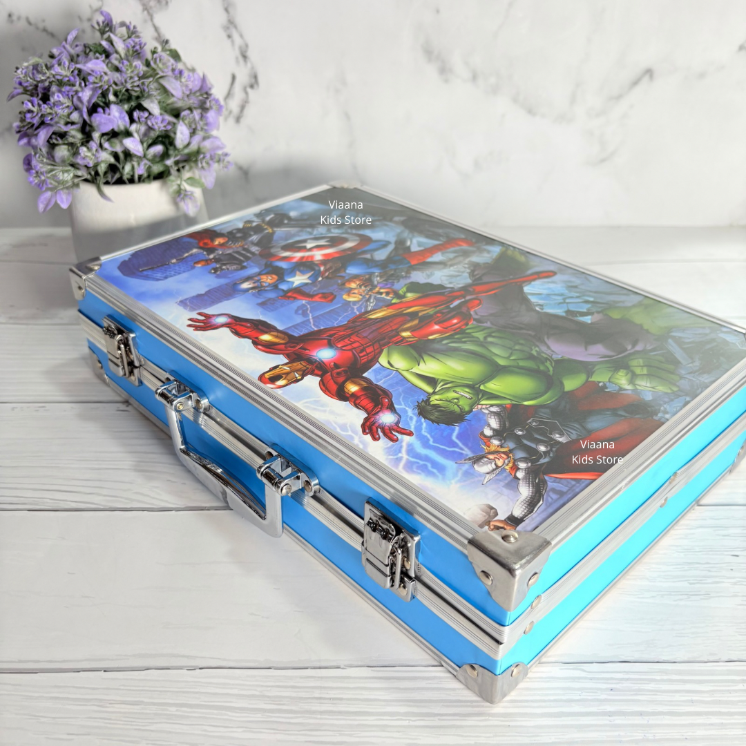 • The box includes a range of artistic mediums, such as color pencils, solid watercolor paints, double head marker pens, oil pastels, watercolor paint with tubes, painting brushes, an eraser, a sharpener, and a palette. This variety allows artists to explore different techniques and experiment with various effects.Â