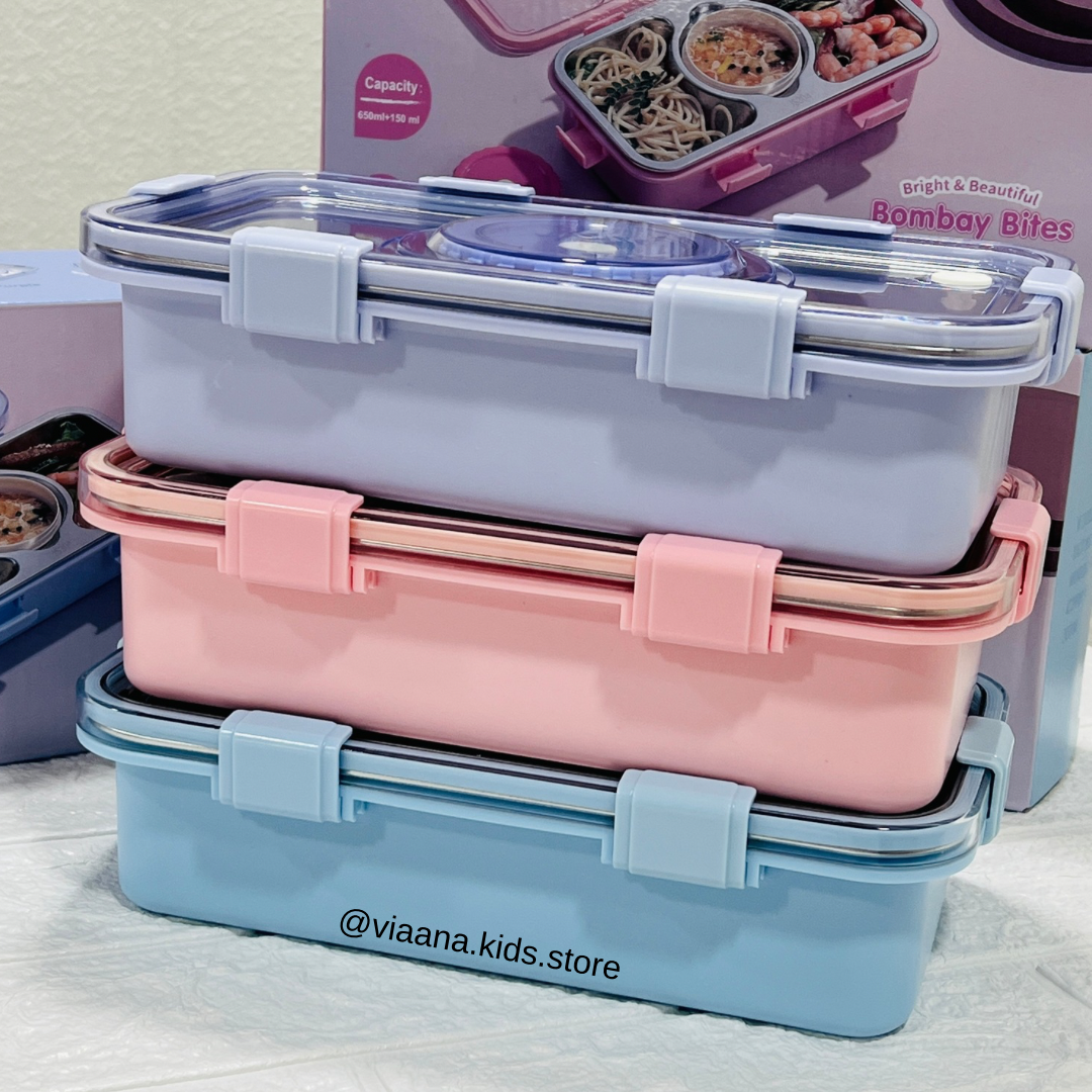 • Compartments Lunchboxes are for Solid food. You can’t place gravy and place it vertically. For Gravy we have provided a Bowl with lid