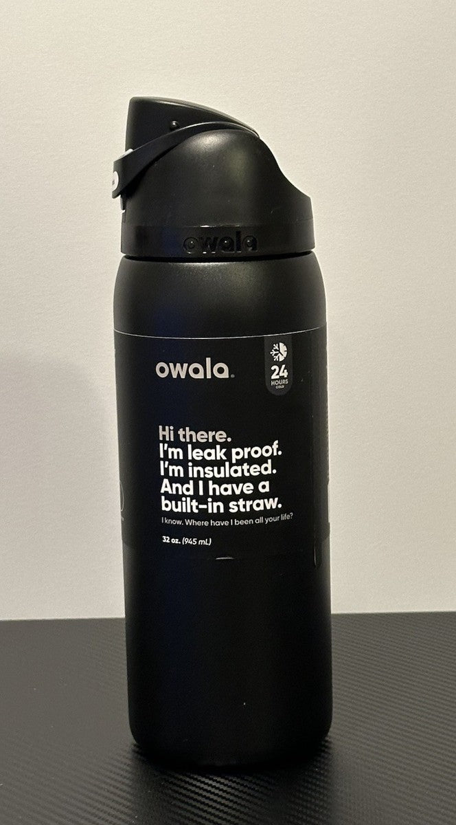 Introducing the FreeSip water bottle, a compact 32oz water bottle. You deserve options when it comes to hydration and that's why we designed the FreeSip to let you choose your own adventure—hold upright to sip through the built-in straw or tilt back to swig through the wide-mouth opening. If that isn’t exciting enough, this bottle is ready to spring into action at any time. Just push the button to flip the top open and push back down to lock it shut (and keep out germs). But we should warn you: If you’re one of those people who likes bottles that spill water everywhere, you’re out of luck… the FreeSip is completely leak proof.