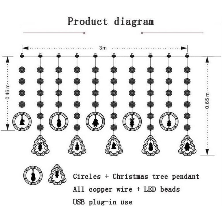 - High-Quality Window Curtain String Lights: The pattern including Christmas tree, stars, elk, the bell lights adopts laser engraving technology, with clear texture, smooth lines, and no burr. the string is 350 cm long