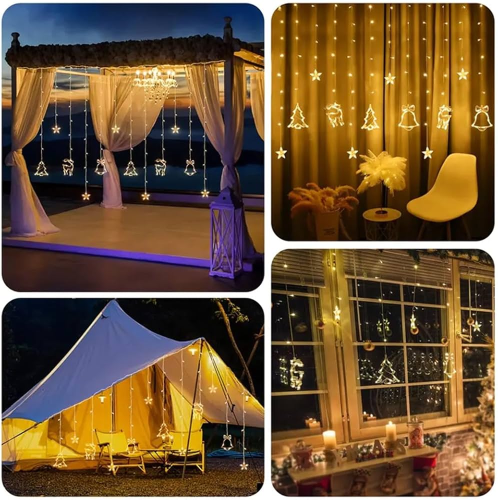 - High-Quality Window Curtain String Lights: The pattern including Christmas tree, stars, elk, the bell lights adopts laser engraving technology, with clear texture, smooth lines, and no burr. the string is 350 cm long