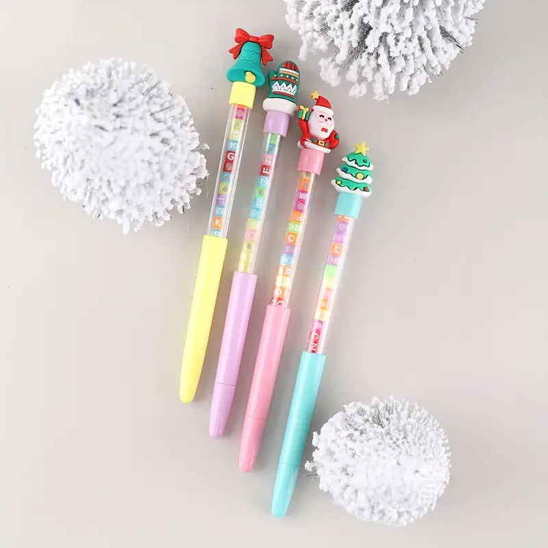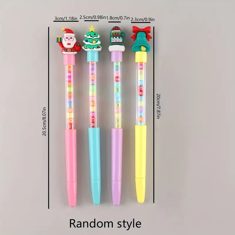 Christmas-inspired Design: The pen features a unique and eye-catching design inspired by the holiday season. With vibrant colors, adorable holiday-themed toppers, and decorative elements like snowflakes, Santa Claus, or reindeer, this pen adds a touch of cheer to your writing experience.