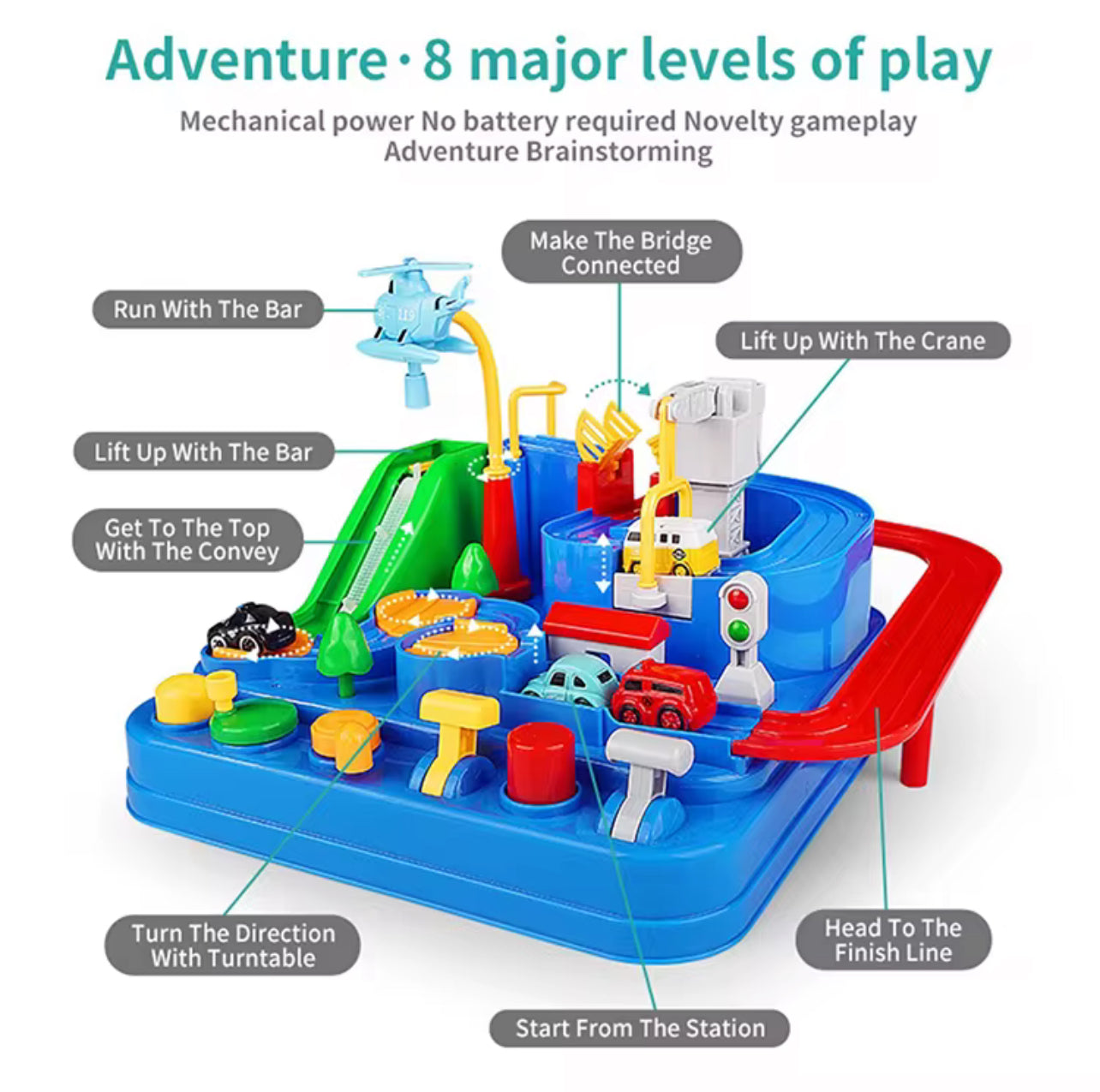 - Race Track Toys for Kids :🚗 Ideal For Training Children's Comprehensive Ability: 2-in-1 Track With Cooperation Game Brings More Joys Than Traditional Single Track For Kids. Guide The Toy Cars Through The Obstacle And Pass Each Challenge, Which Is Great For Training And Improving Kids Motor Skills, Problem Solving And Hand-Eye Coordination.