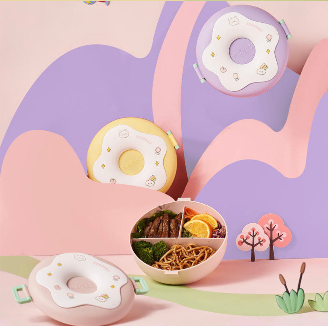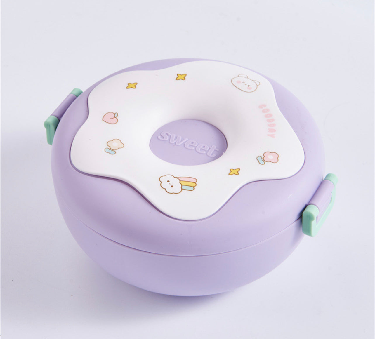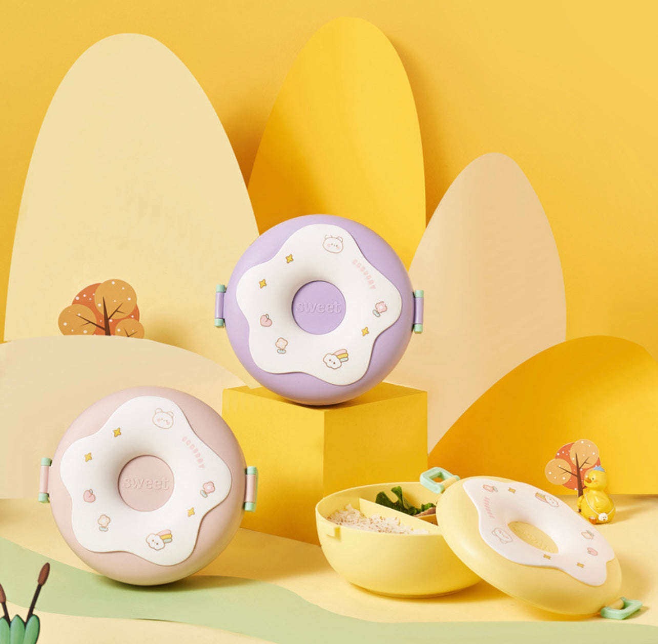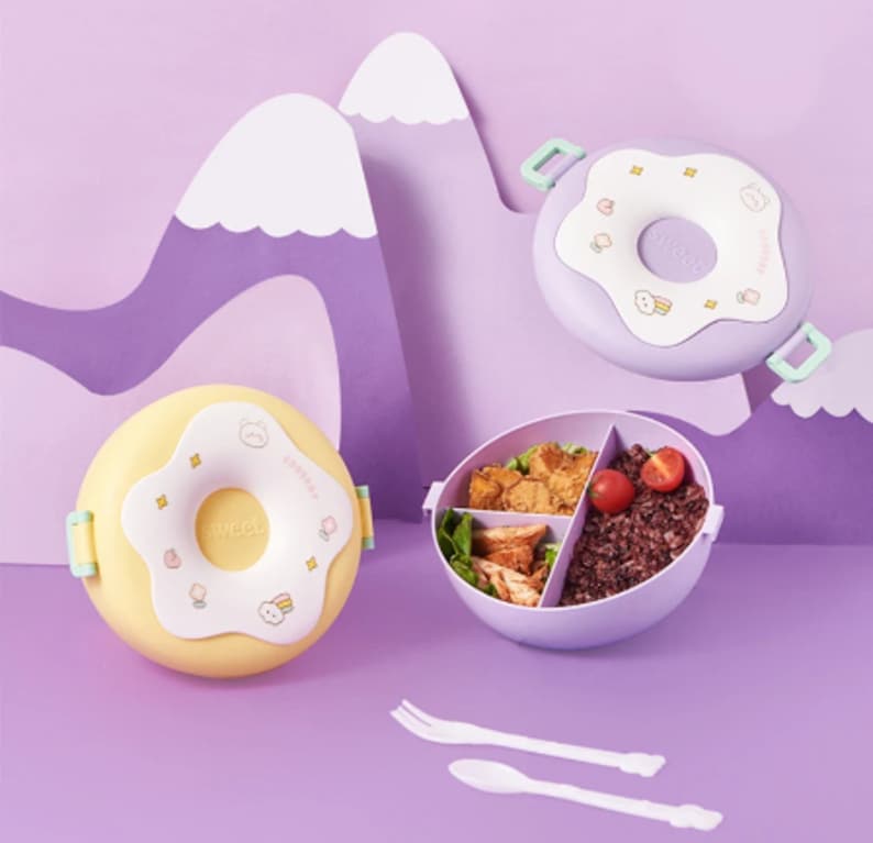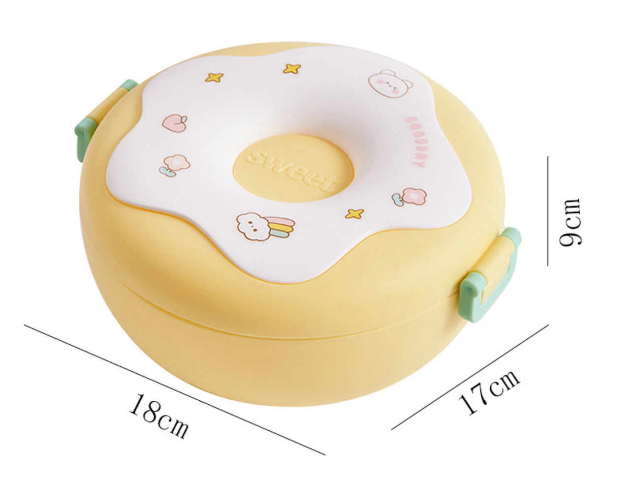 • Cute and interesting Donut shape, you can put fruits, sandwiches or some small snacks in, it looks full of appetite. Comes with a small spoon and fork.