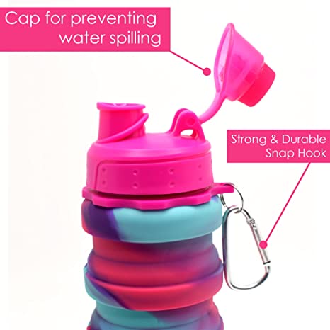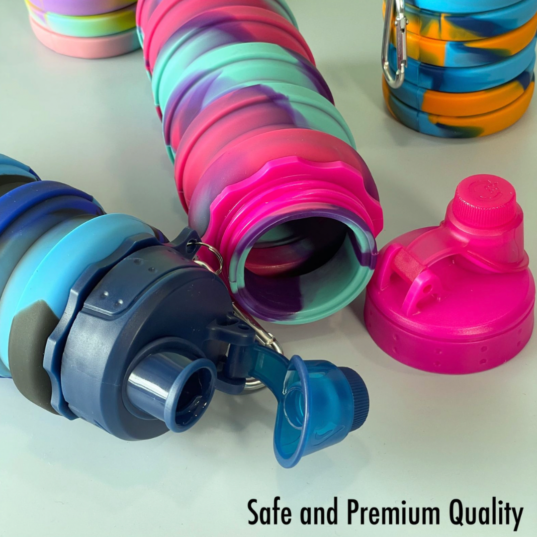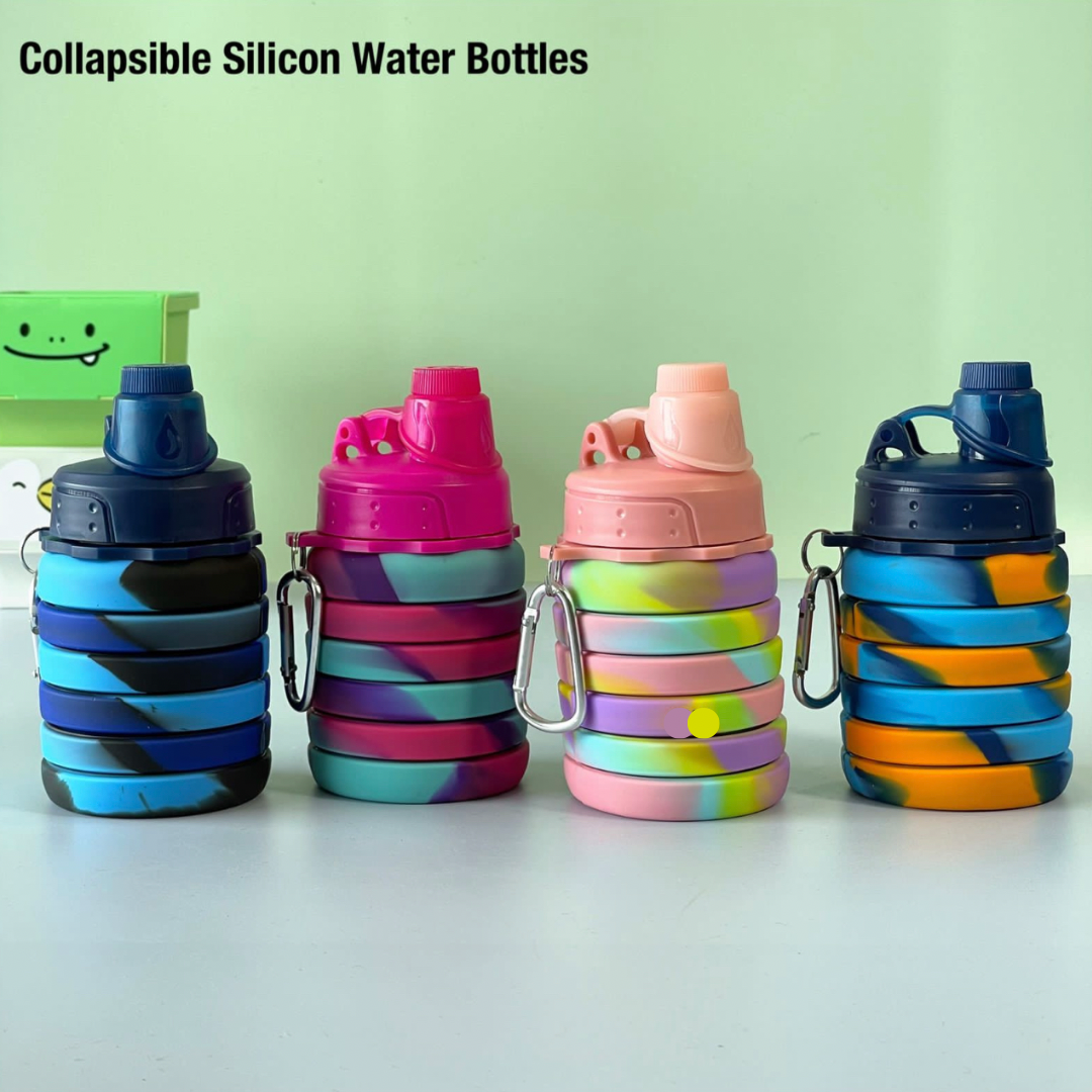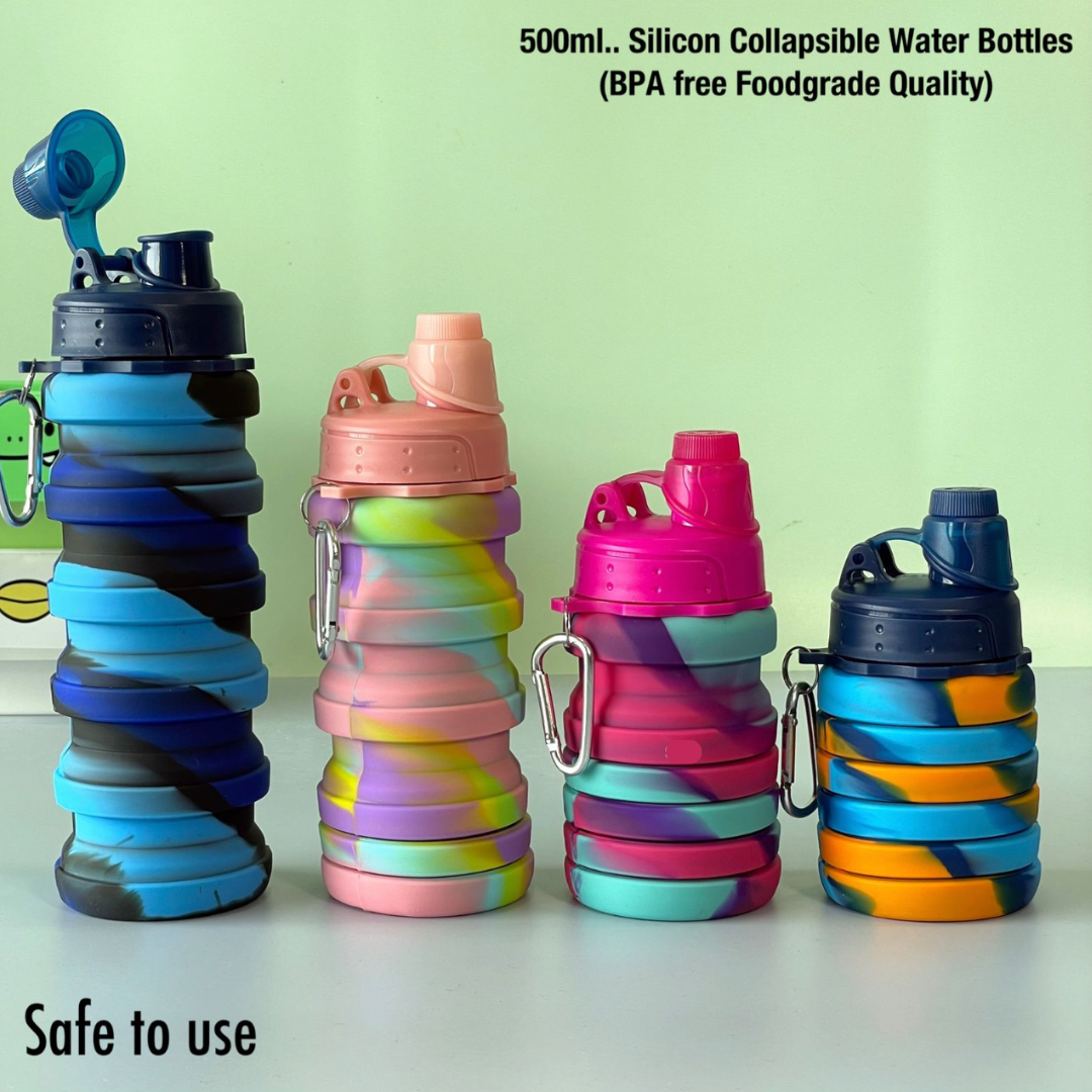 - Stay hydrated with the silicon water bottle. This multipurpose water bottle can be folded/compressed up to 1/4th of its original size.