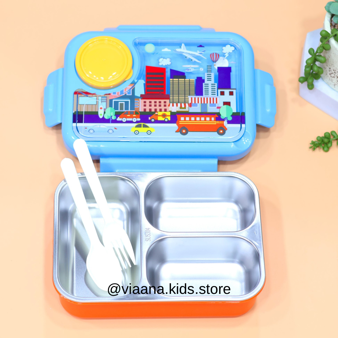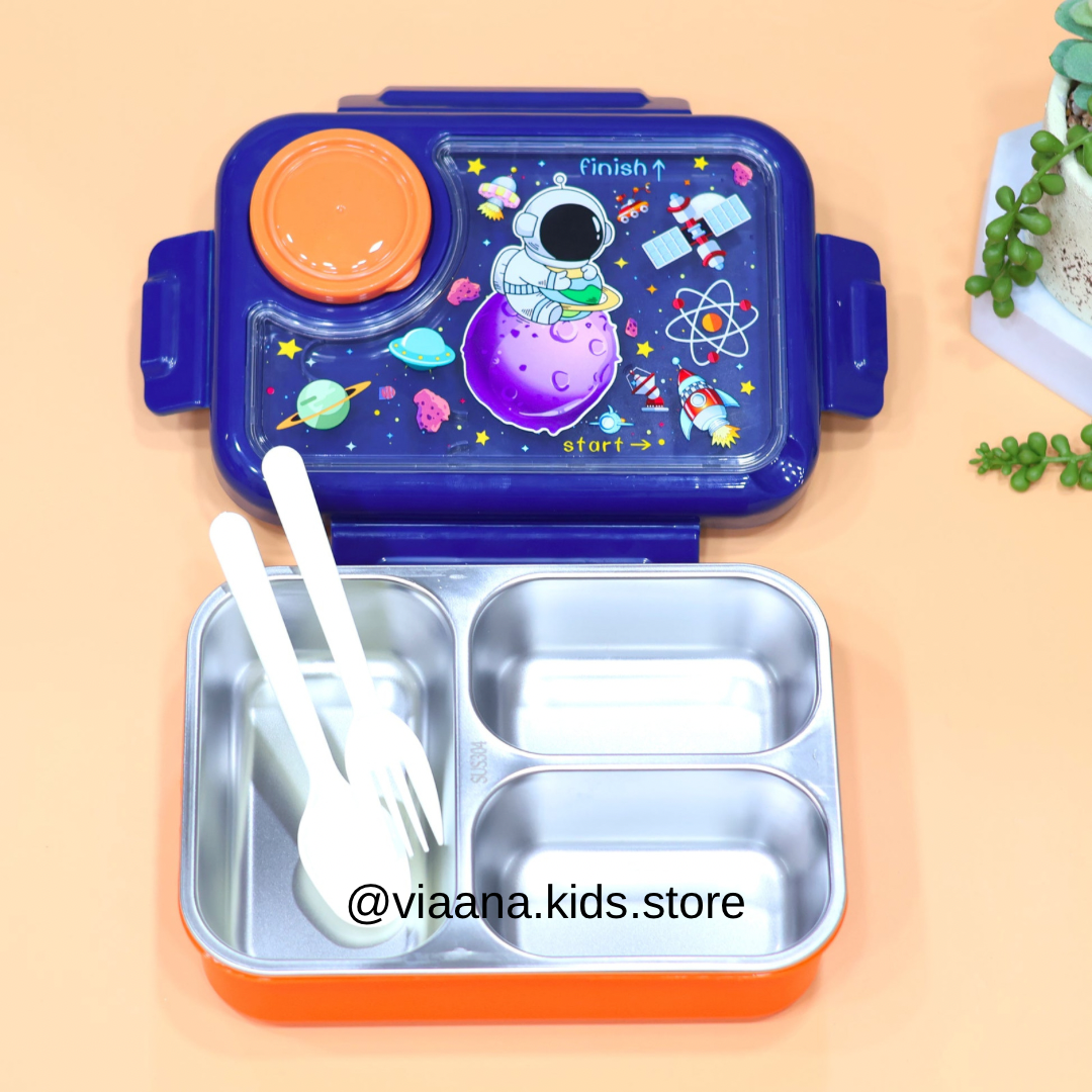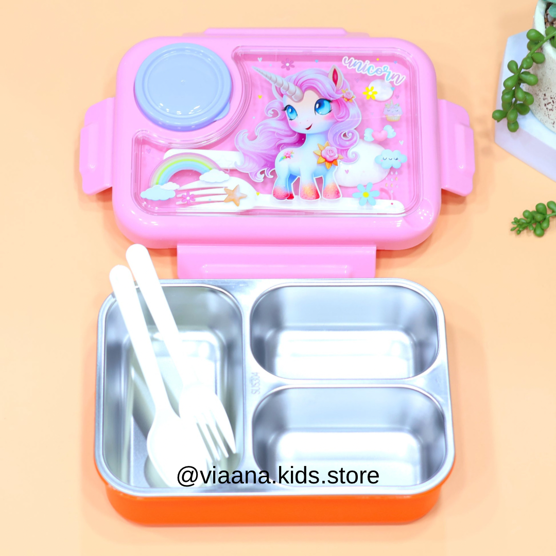 Upgrade your lunchtime experience with the Forever Fresh Stainless Steel Lunch Box, where functionality meets fun with delightful unicorn, car, and astronaut designs.