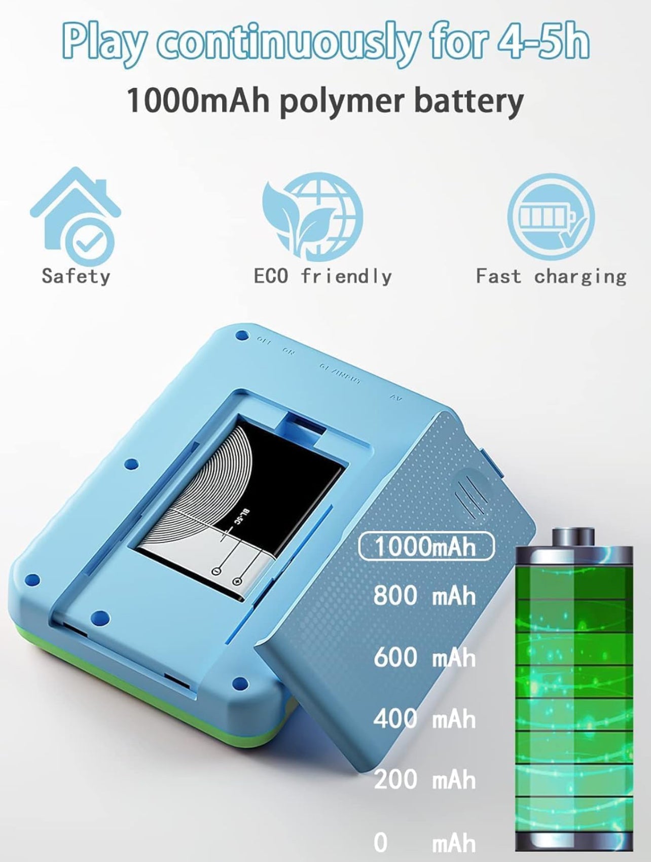 - Rechargeable Handheld Game Console - The Nodes ex G5 handheld game console features a built-in high-capacity rechargeable battery that provides 5-6 hours of gameplay on a full charge.