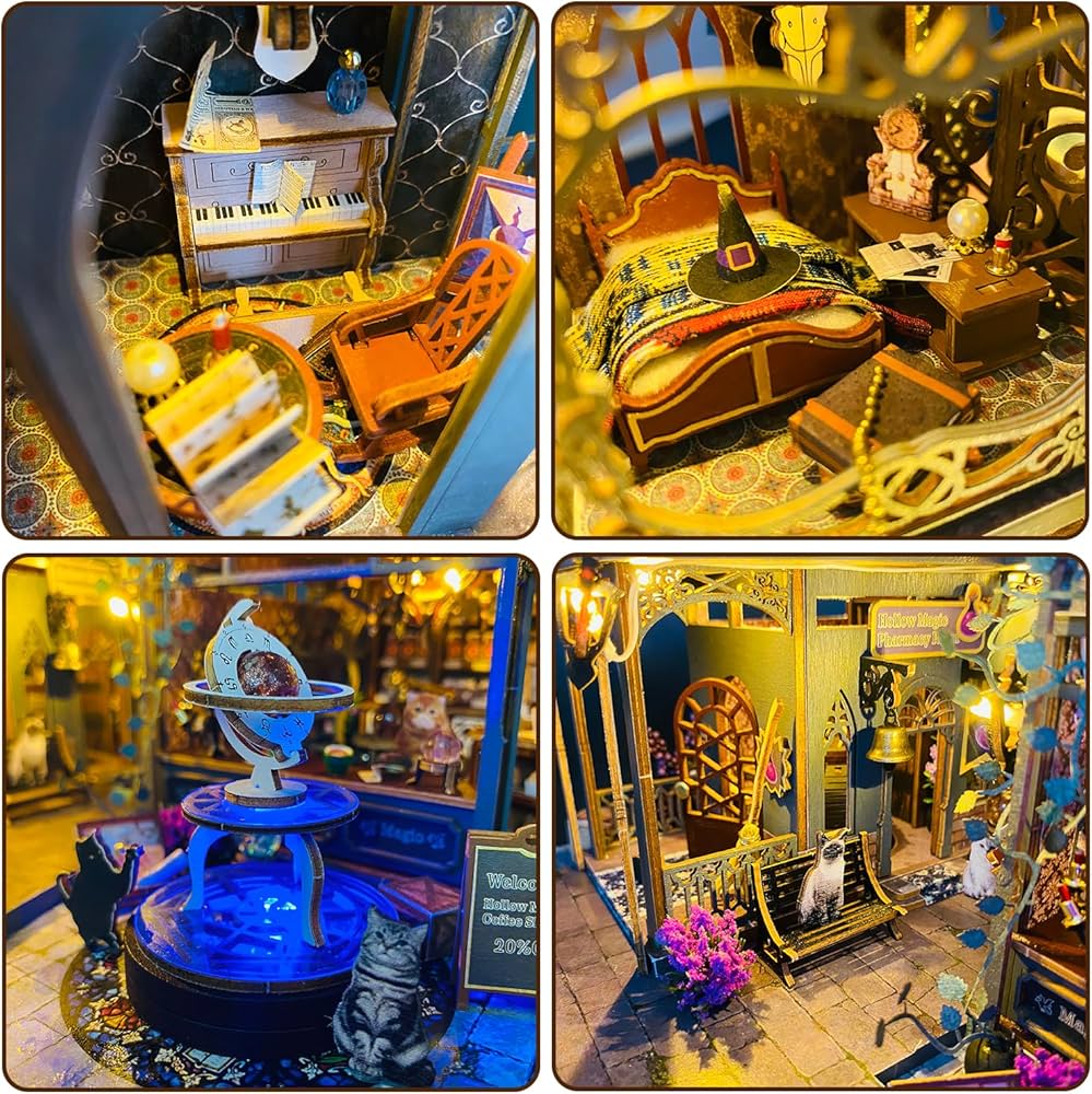 Enter Hollow Magic Coffee Shop DIY Miniature Kit, a café steeped in magic, mystery, and quiet wonder. From crystal balls and glowing spell circles to a snug little coffee bar, this kit stirs dark fantasy and cozy charm into one enchanting escape.Â
