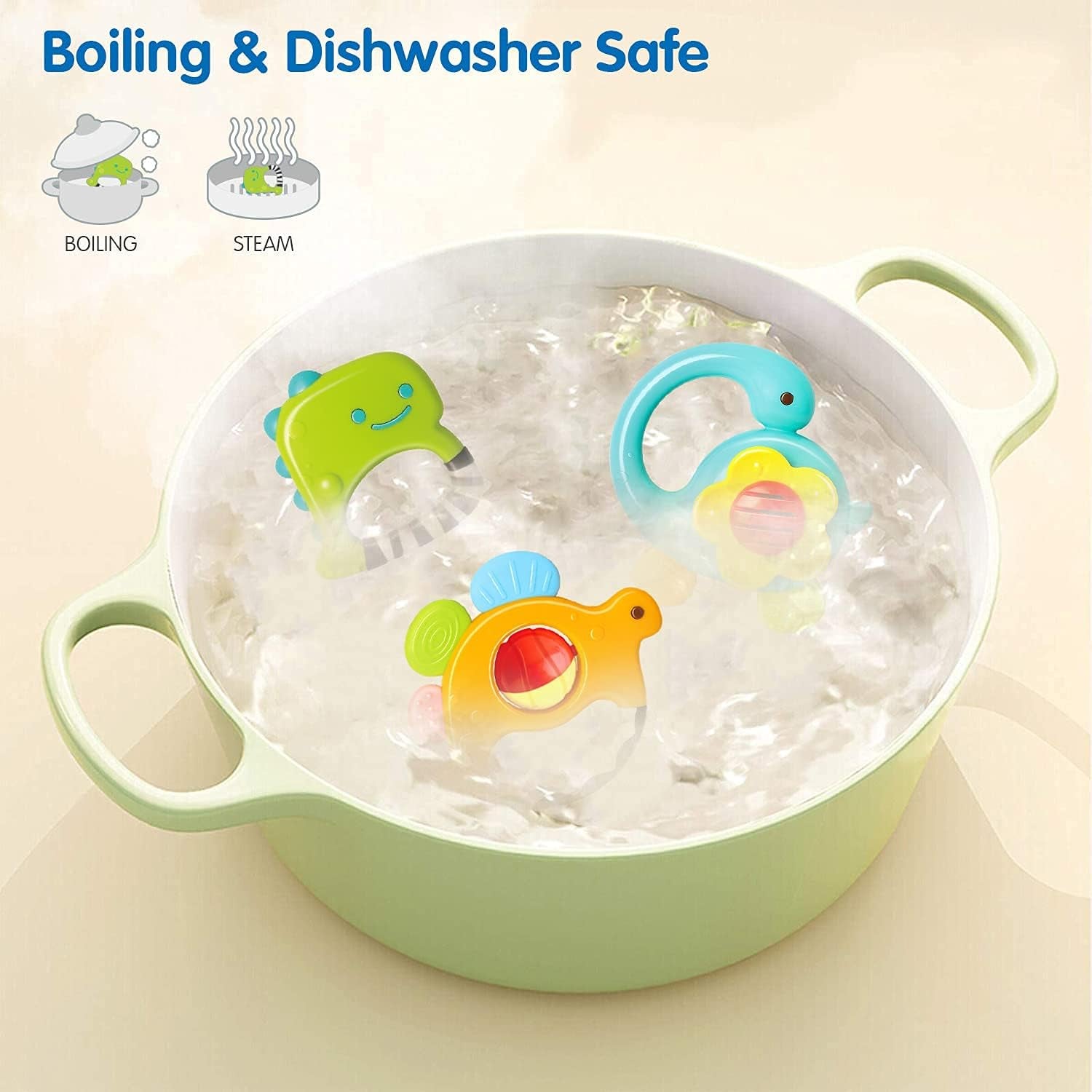 - Great Teething ToysăBPA Free Paint-Free Teething Toy Set with 100% Food Grade Silicone ABS Material Made. Different Textures Gently Massage Sore Teething Gums and Relieves Discomfort.