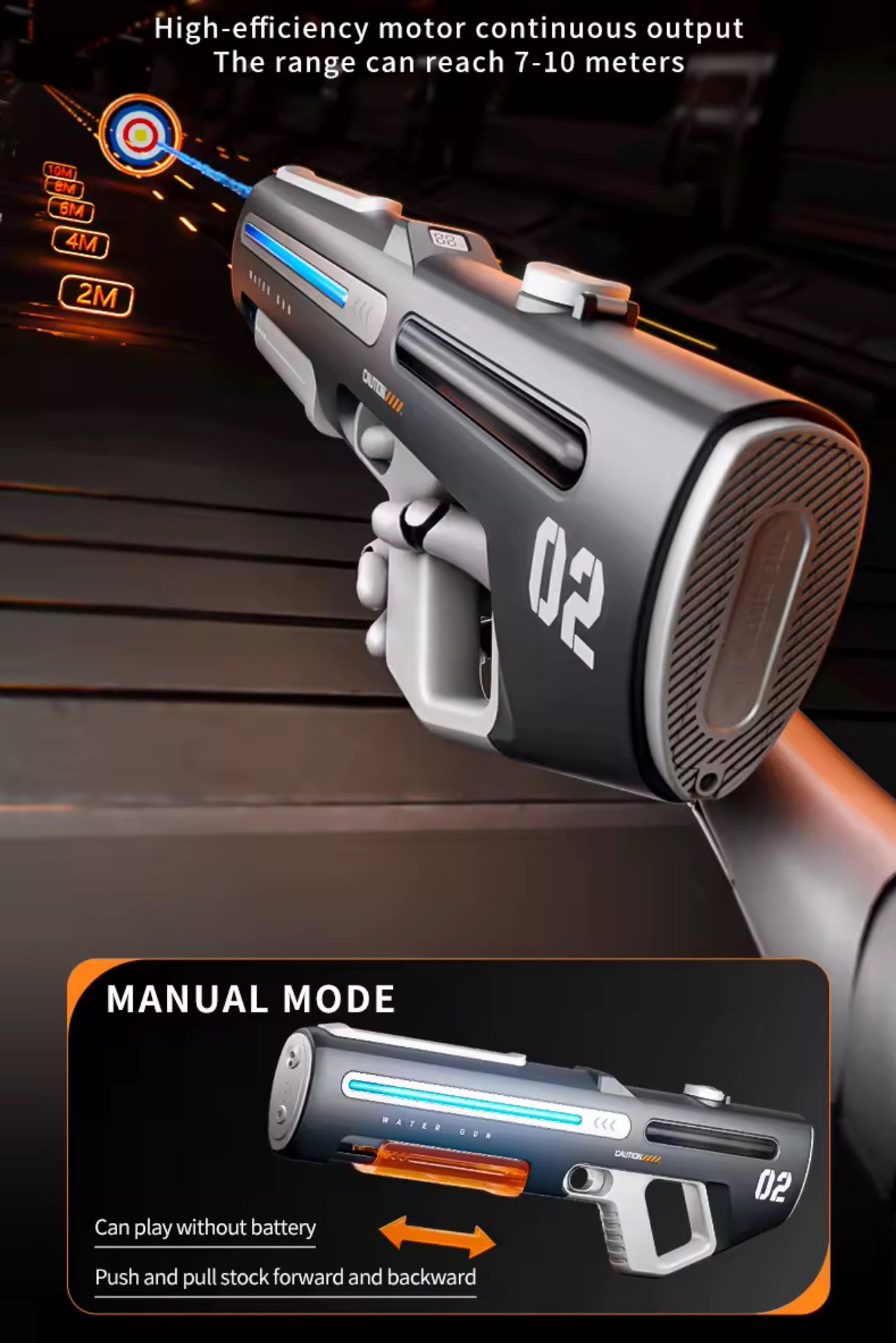 - High Power 820CC Capacity: Large water tank for extended play without constant refills.
