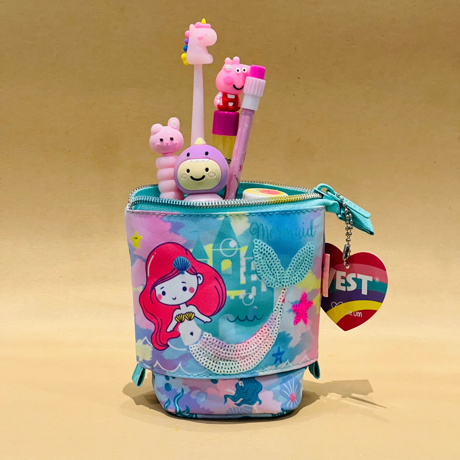 • Stash away your favourite Pens, pencils and other Stationeries while on the go, then watch as this pencil case easily transforms into a standing Pencil cup for simple access to your stationery while drawing, writing and colouring at your desk. Features an awesome large character print with graphic design details