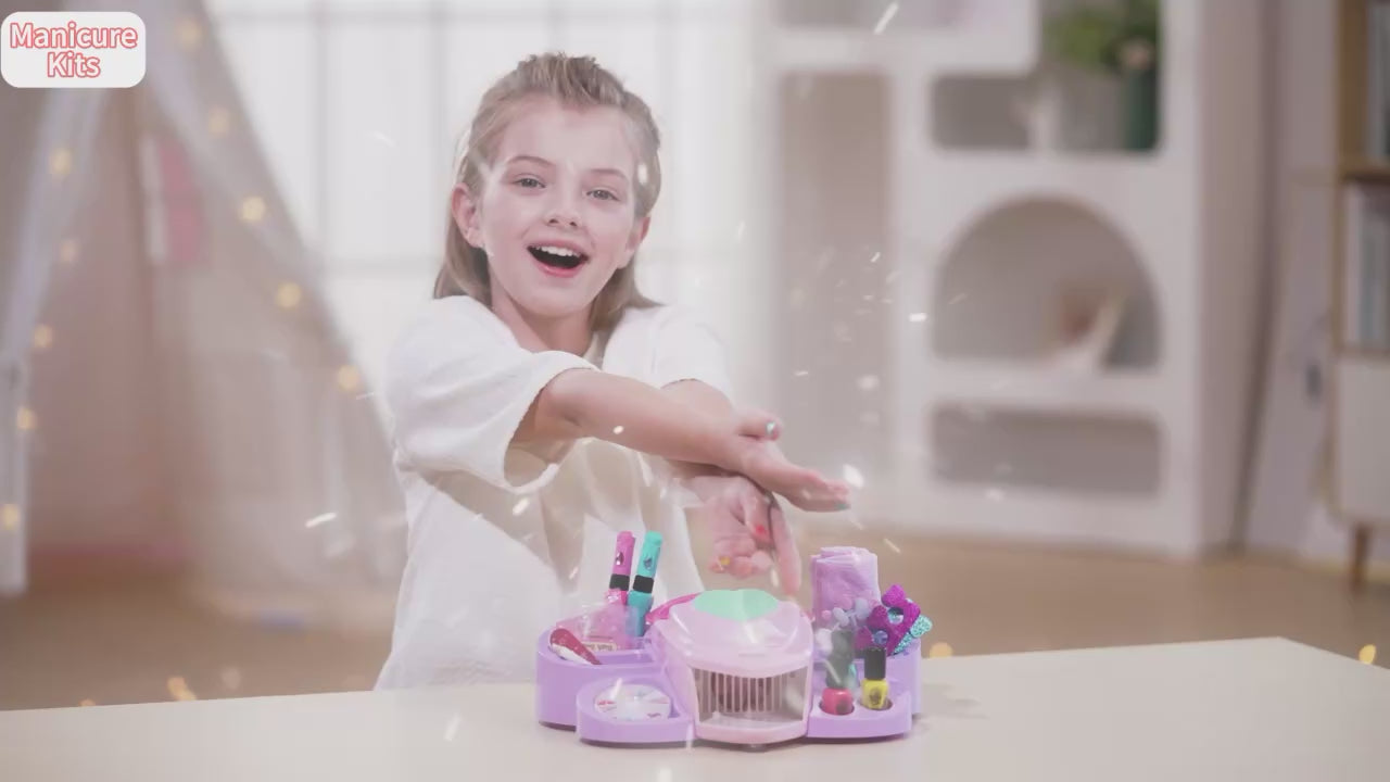 - GIRLS NAIL KIT WITH EVERYTHING - The integrated nail machine, shaped like a butterfly, features a storage rack, nail fan dryer, and hand care. In addition, the nail art kit includes 3 nail polish for kids, 2 nail art pens, stickers, sequins, 30pcs DIY nail tips with nail glue, 2 sets of press on nails for kids, a nail file, 2 toe separators and hand spa supplies (mani-soak salt, towel). A complete nail kit for girls ages 7-12!