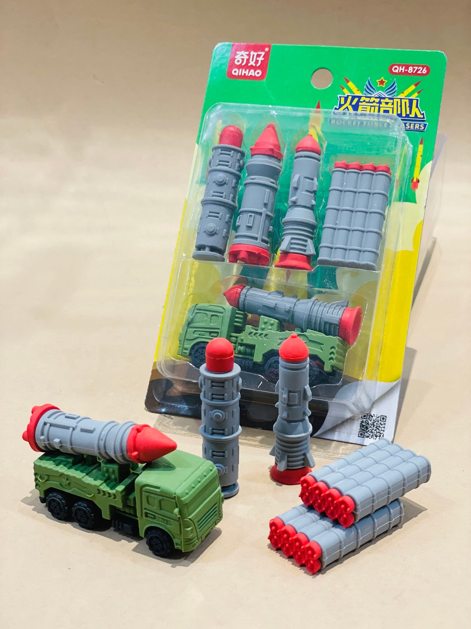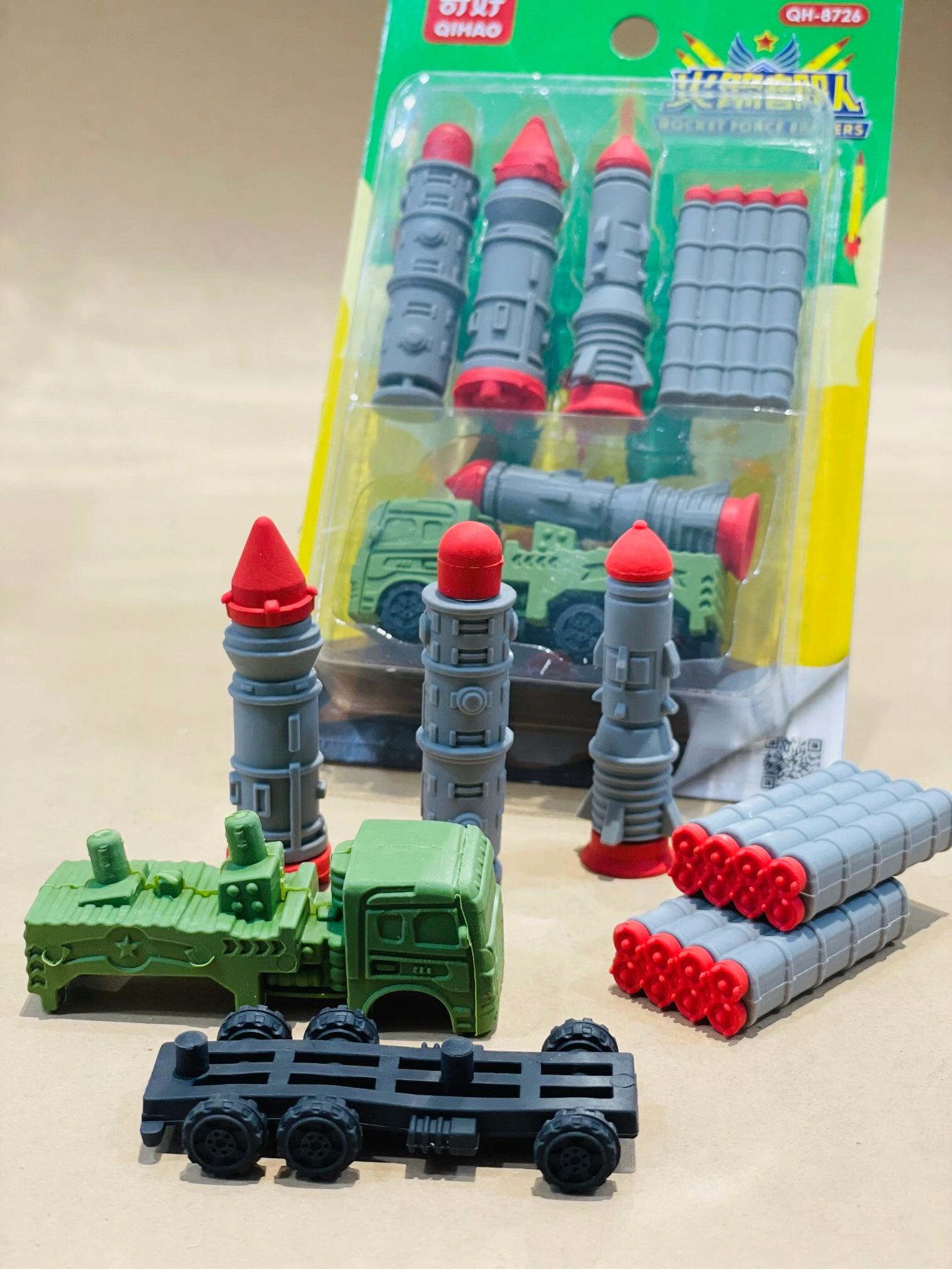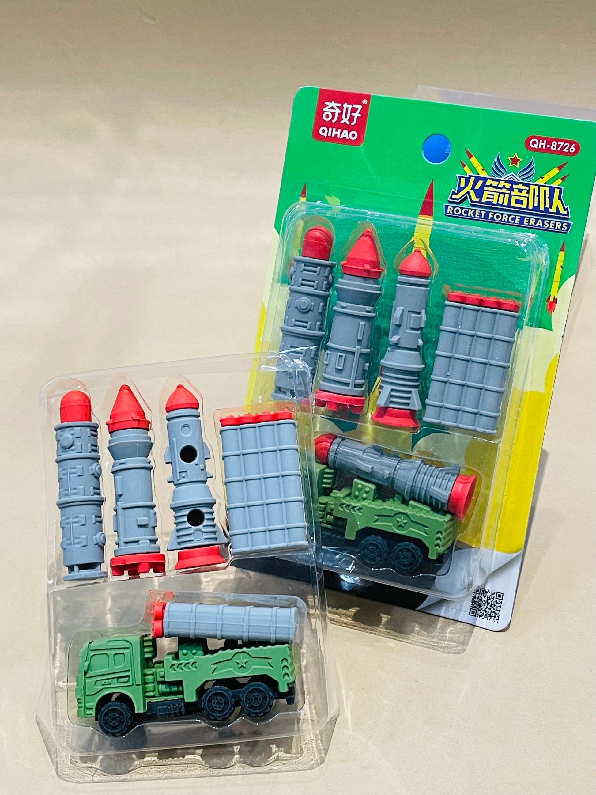 - High quality - Made of high-quality material, The rocket launcher truck and missiles gives very dashing look to this school stationary erasers.