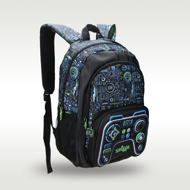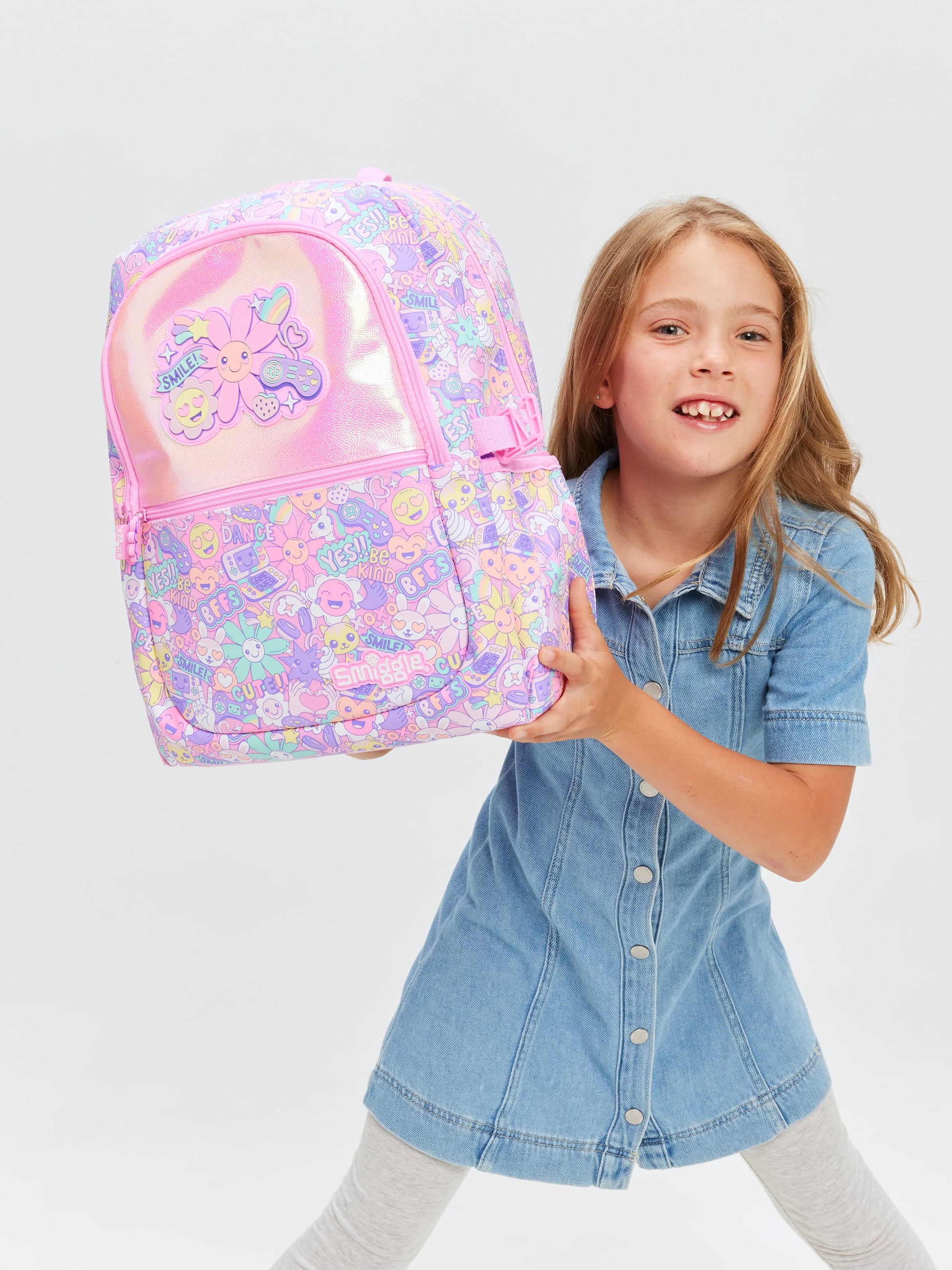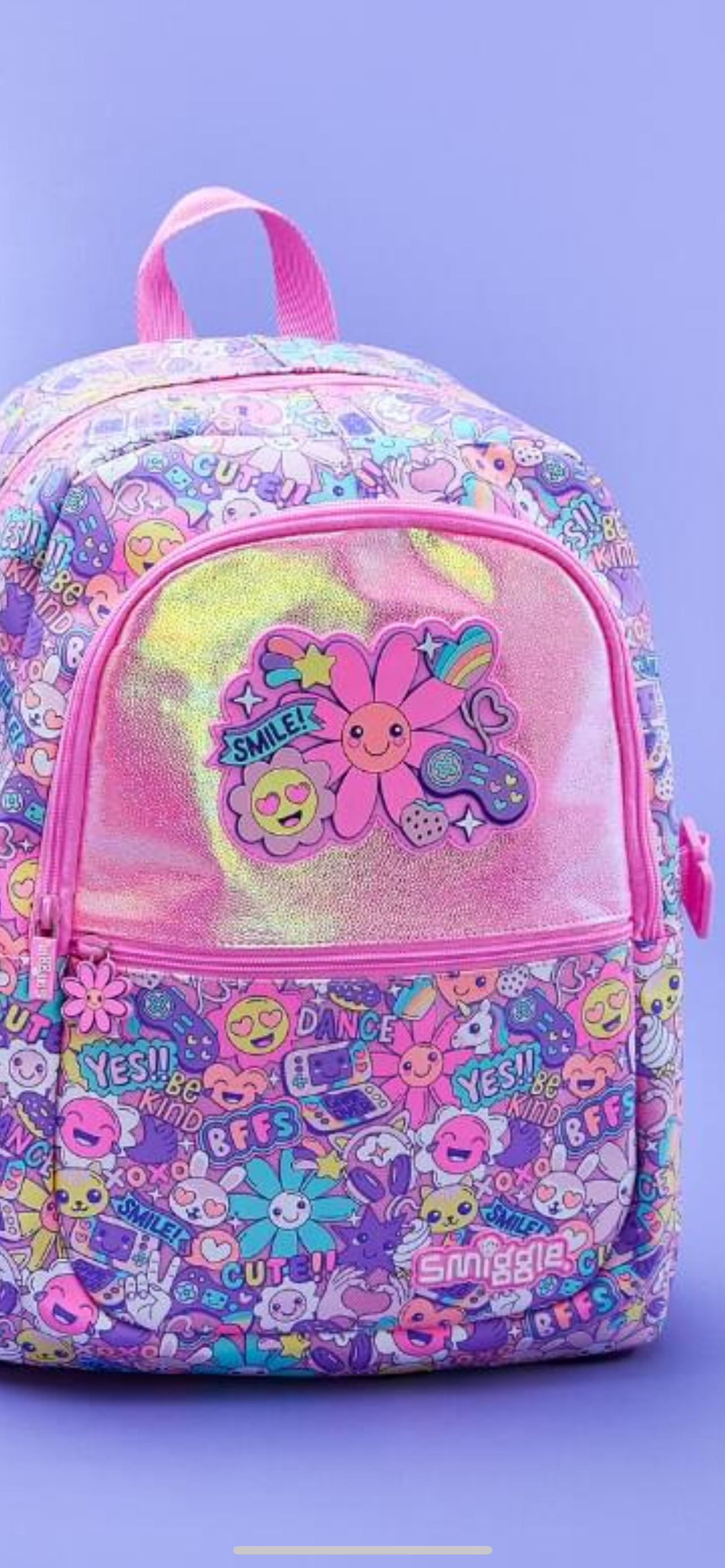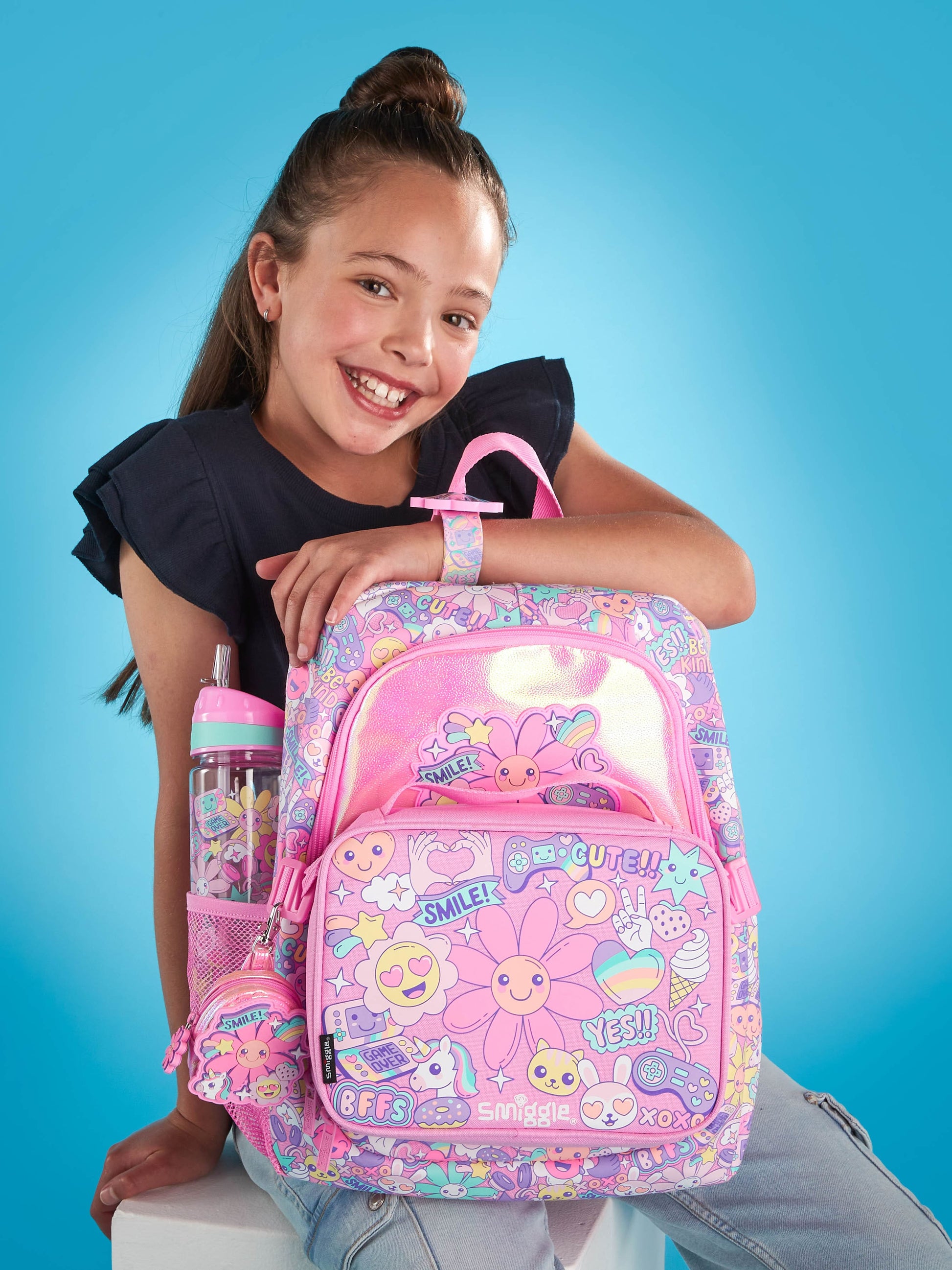 Pack all School supplies and materials inside Smiggle’s Classic Backpack! Features an embossed Creeper front pocket to store all grab n go essentials, two spacious zipped compartments for larger Books and dual drink bottle sleeves to stay hydrated!