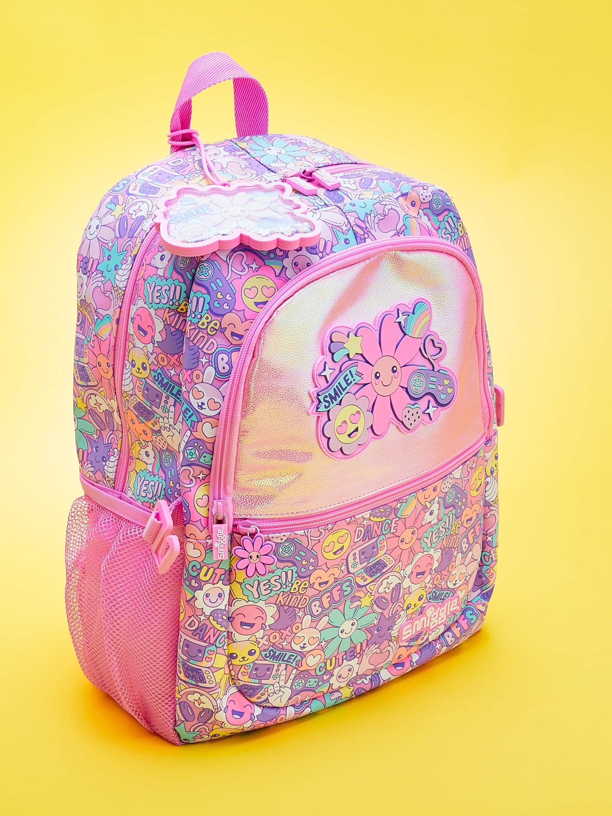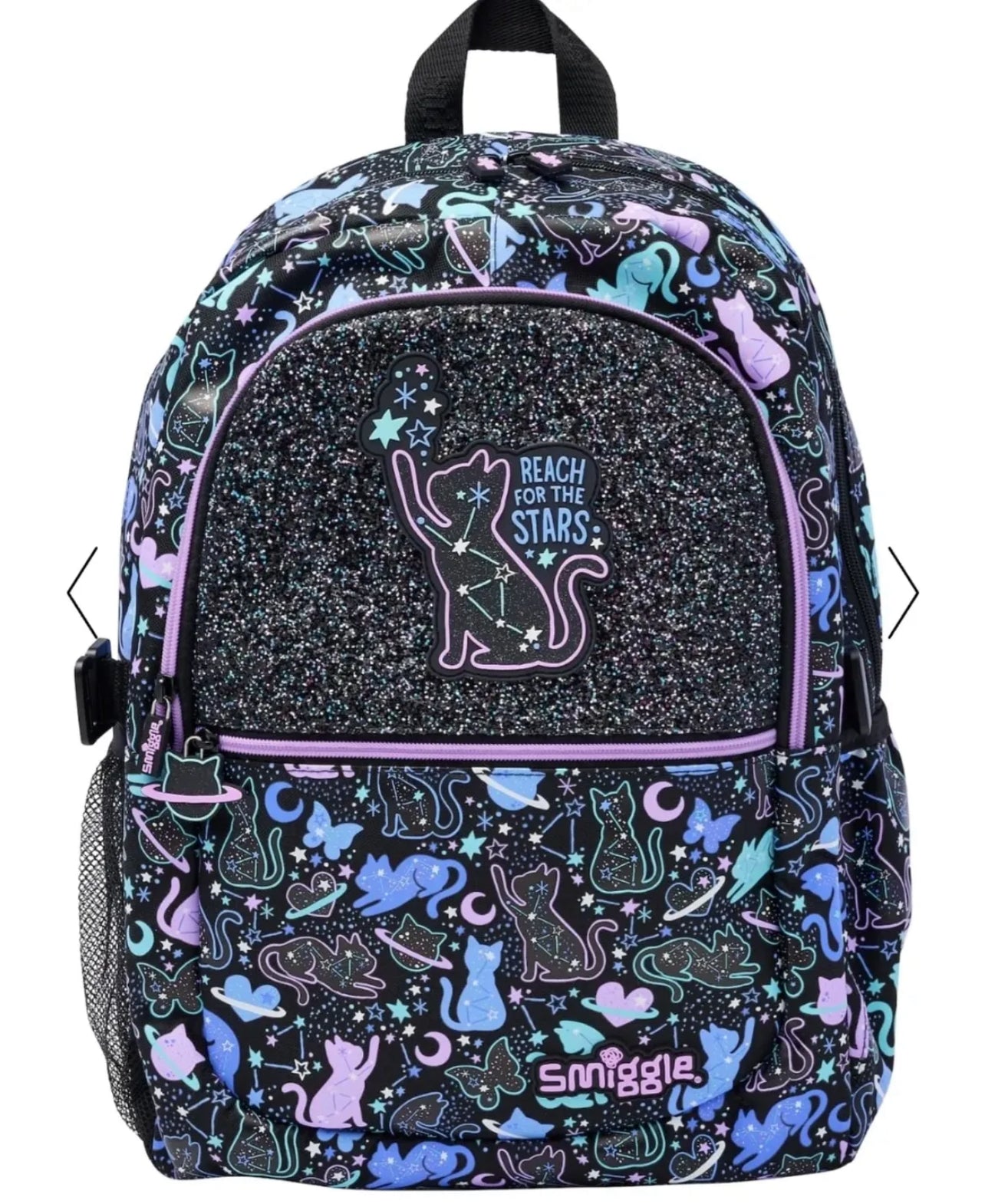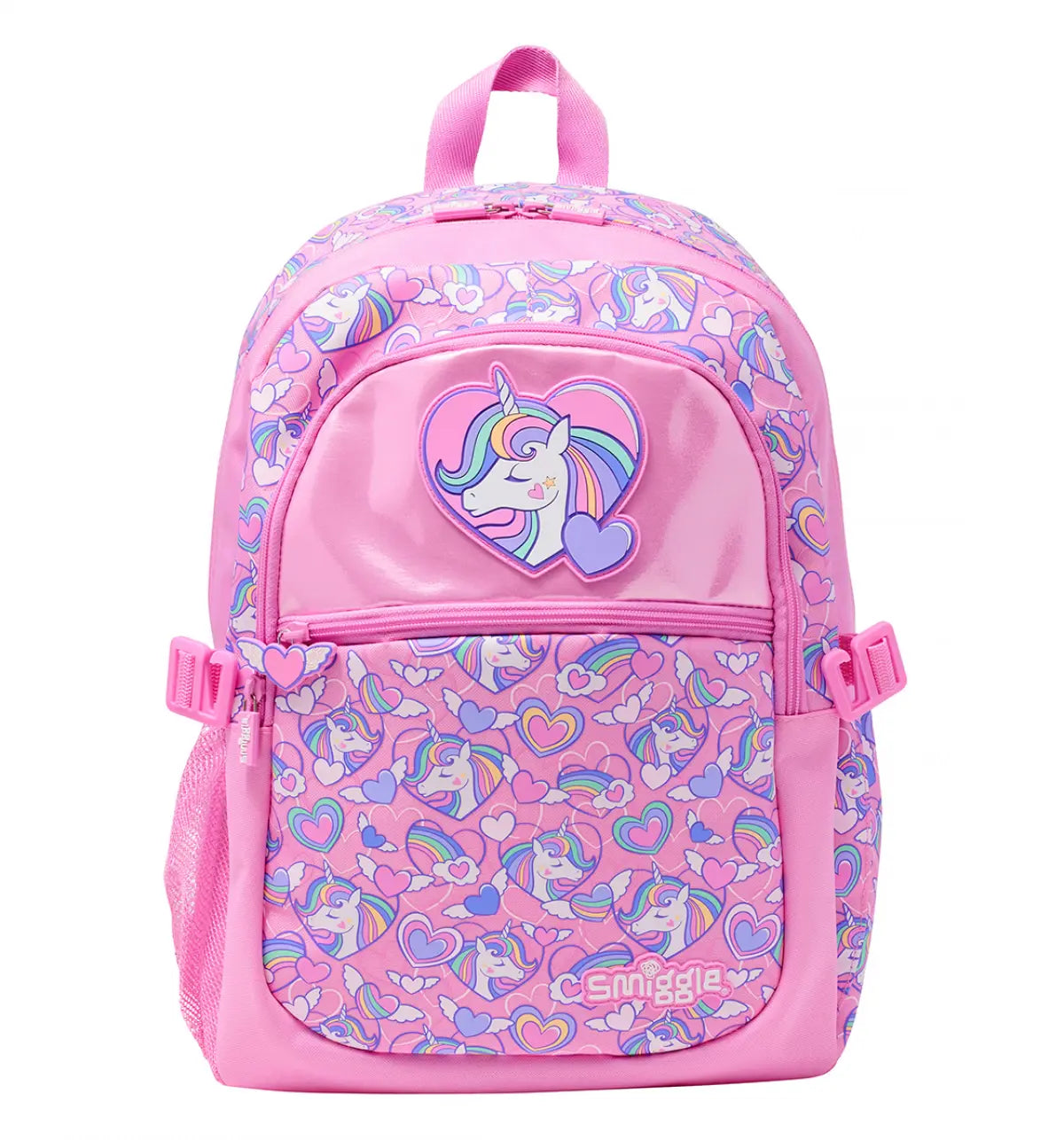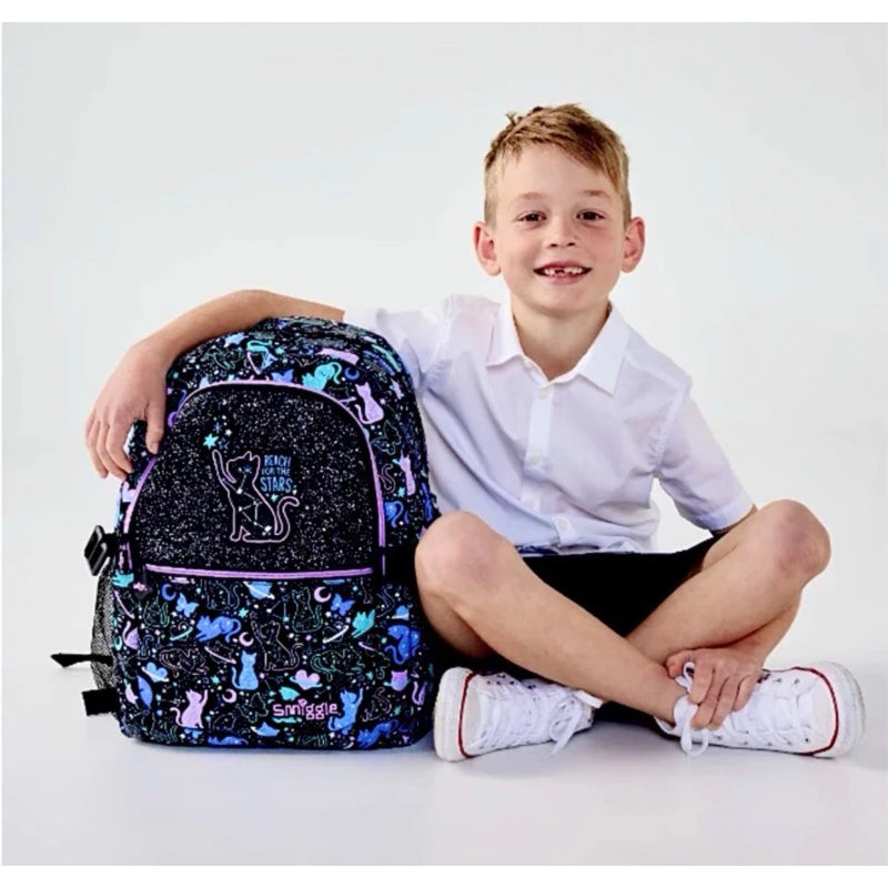 Pack all School supplies and materials inside Smiggle’s Classic Backpack! Features an embossed Creeper front pocket to store all grab n go essentials, two spacious zipped compartments for larger Books and dual drink bottle sleeves to stay hydrated!
