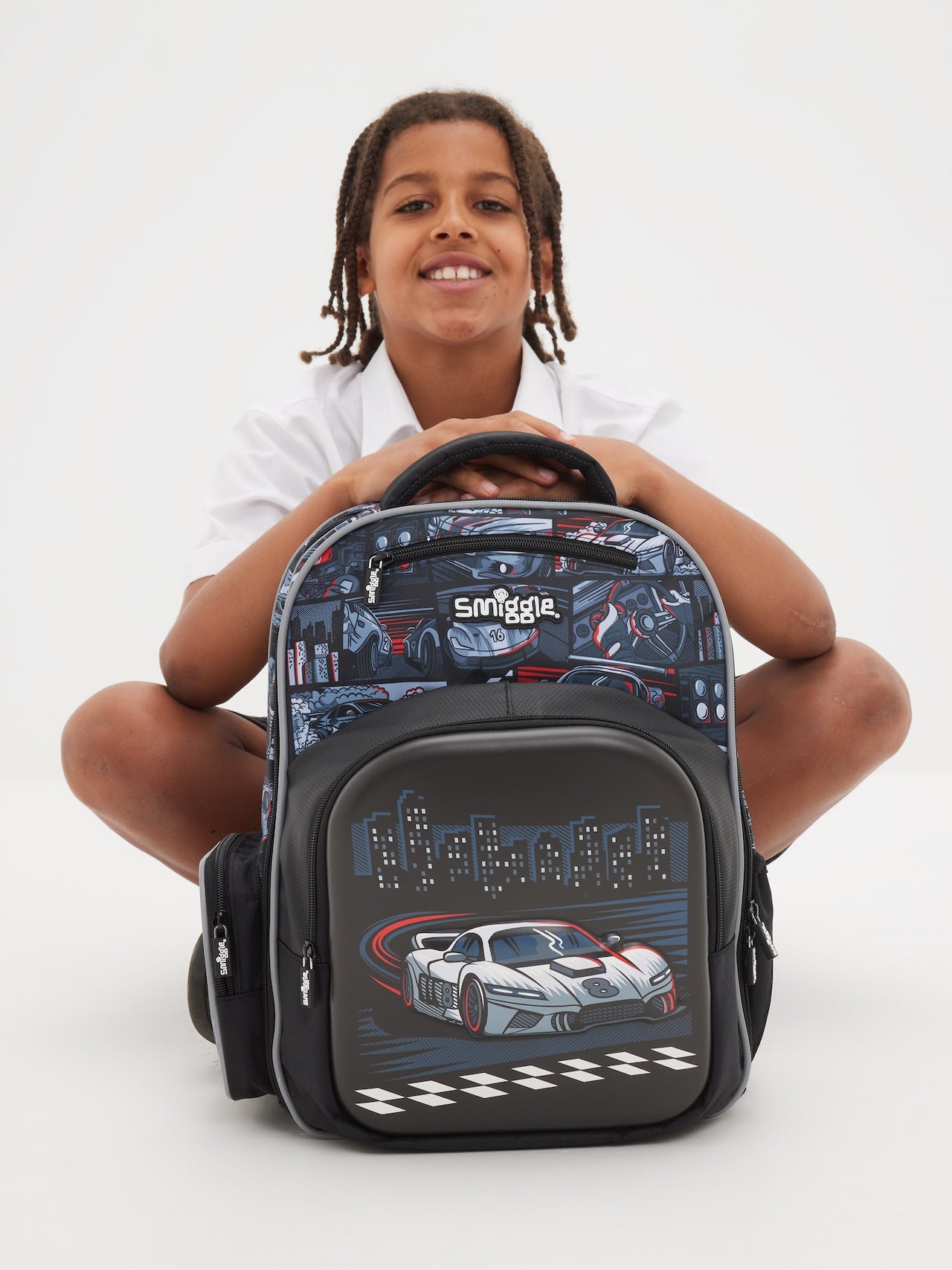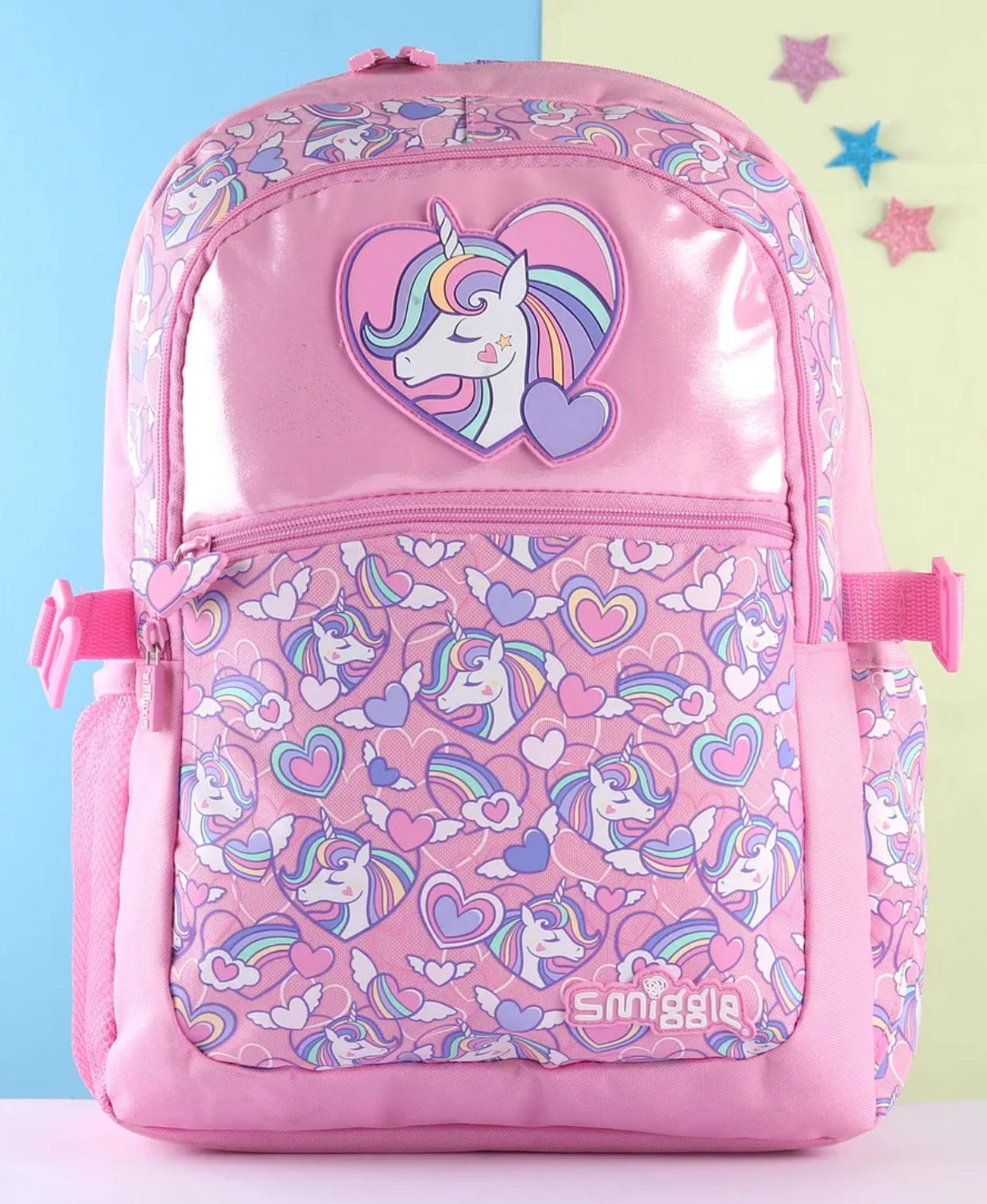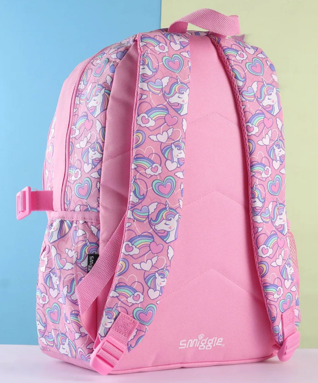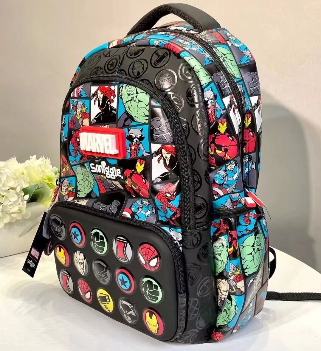 Pack all School supplies and materials inside Smiggle’s Classic Backpack! Features an embossed Creeper front pocket to store all grab n go essentials, two spacious zipped compartments for larger Books and dual drink bottle sleeves to stay hydrated!