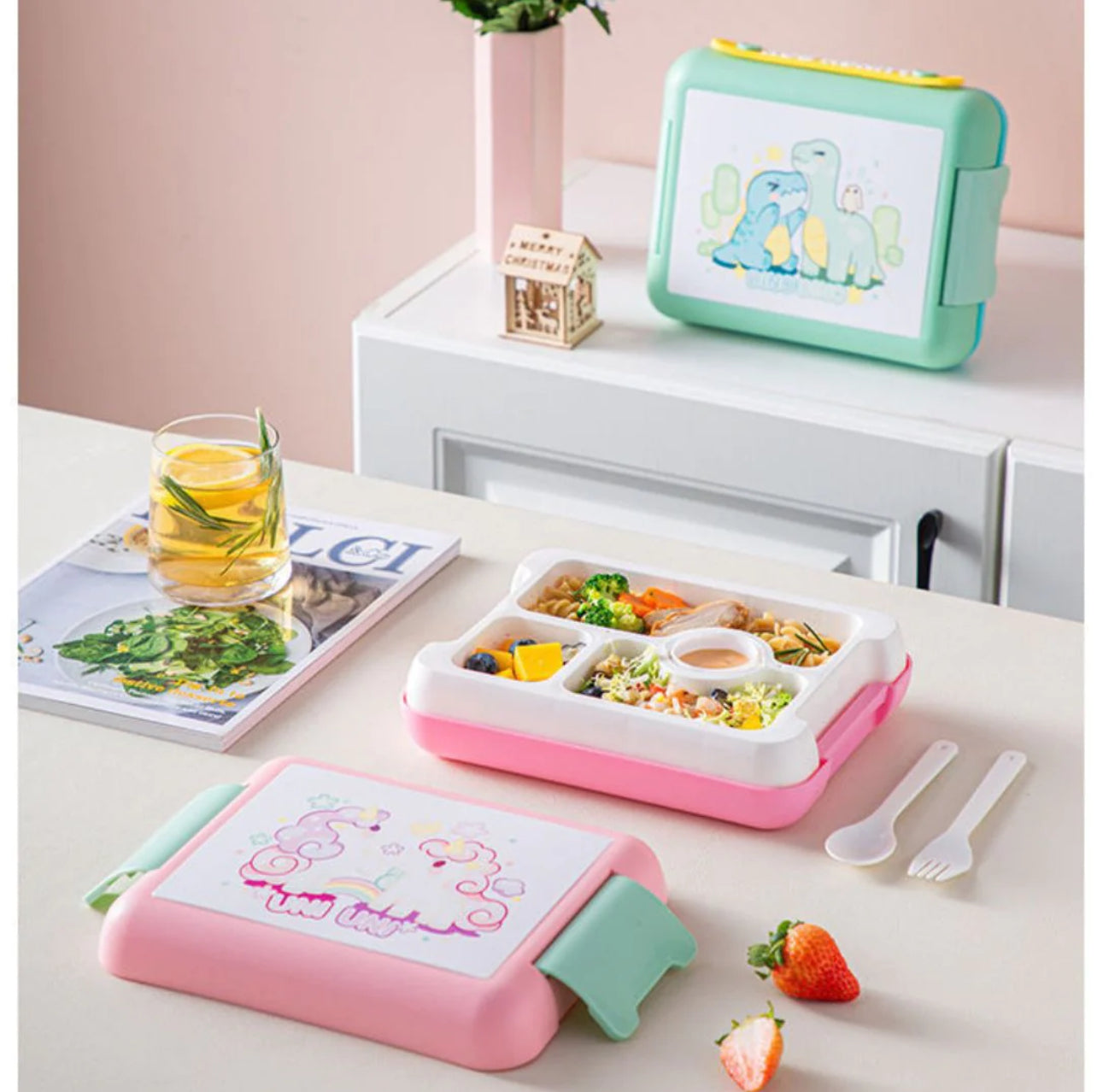 Durable and Safe Construction: Crafted from high-quality, food-grade materials, our lunch box is built to withstand the rigors of daily use. Rest easy knowing your child's meals are stored in a safe and durable container.