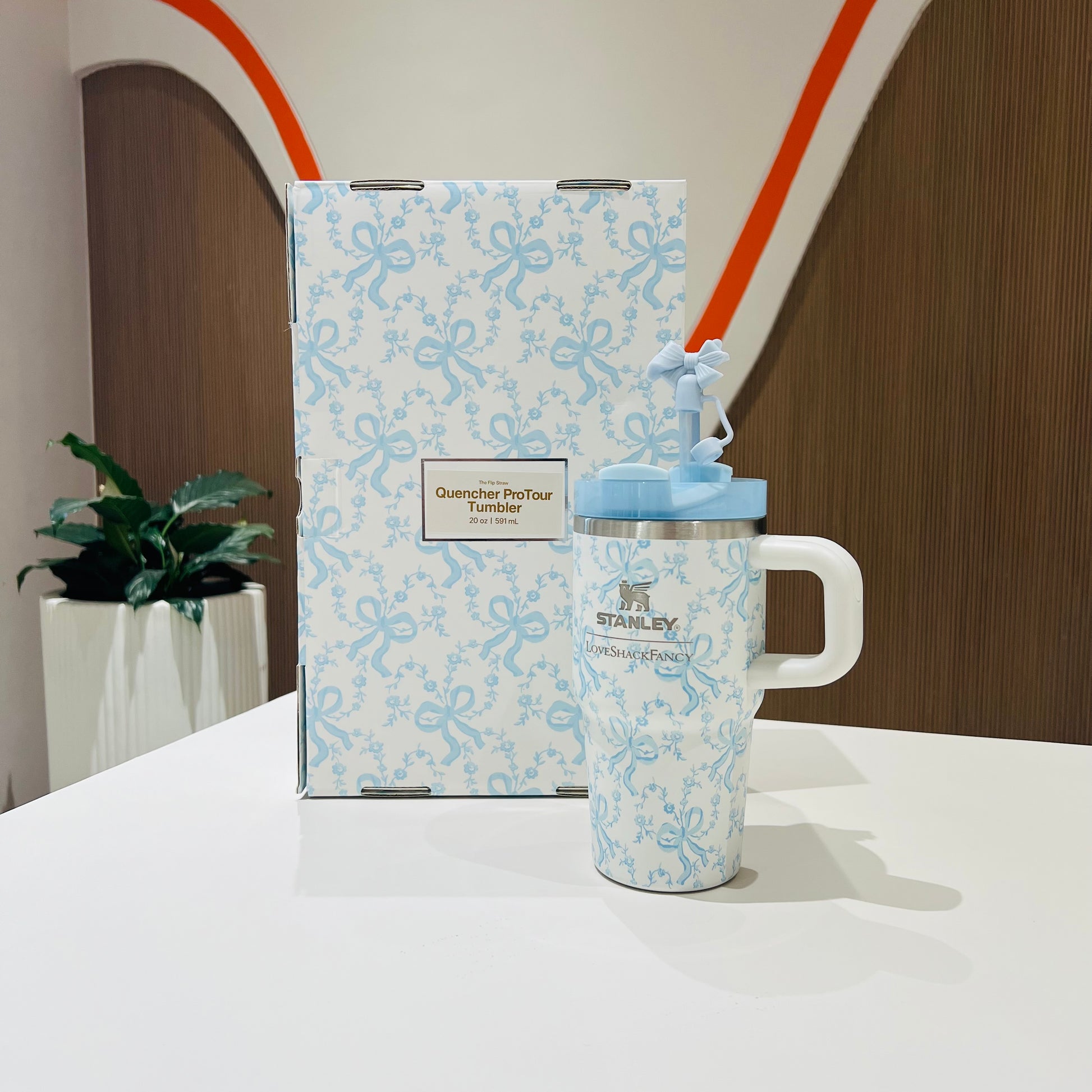 The 20-ounce Quencher® H2.0 FlowState™ Tumbler keeps your drink ice cold for hours, thanks to double-wall vacuum insulation. The versatile FlowState™ 3-position lid has three sip settings: one for the reusable straw, one without and the option to rotate the silicone cover shut when you’re on the go. Did we mention it’s adorned with a bow-shaped Straw Topper?