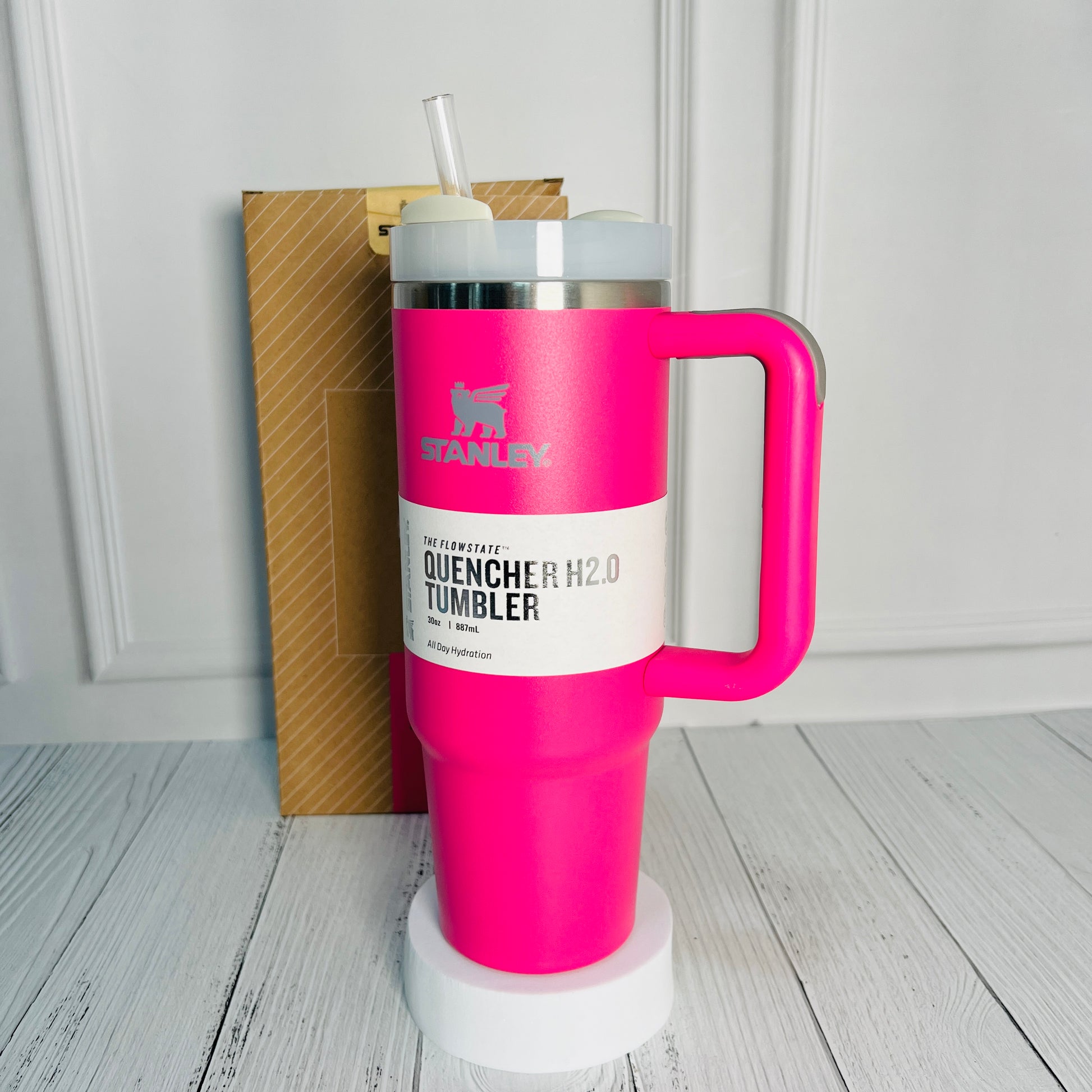 Constructed of recycled stainless steel for sustainable sipping, our 30oz Quencher H2.0 offers maximum hydration with fewer refills. Commuting, studio workouts, day trips or your front porch—you’ll want this tumbler by your side. Thanks to Stanley’s vacuum insulation, your water will stay ice-cold, hour after hour. The advanced FlowState™ lid features a rotating cover with three positions: a straw opening designed to resist splashes while holding the reusable straw in place, a drink opening, and a full-cover top. The ergonomic handle includes comfort-grip inserts for easy carrying, and the narrow base fits just about any car cup holder.
