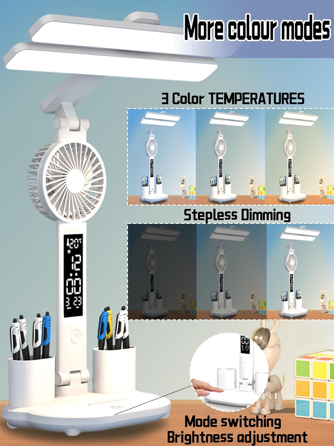 (Table Lamp with Fan Holder) This reading lamp not only provides lighting, but also has fan function, and can adjust three different wind speeds to meet a variety of different heat dissipation needs, so that you can work and study in a comfortable environment