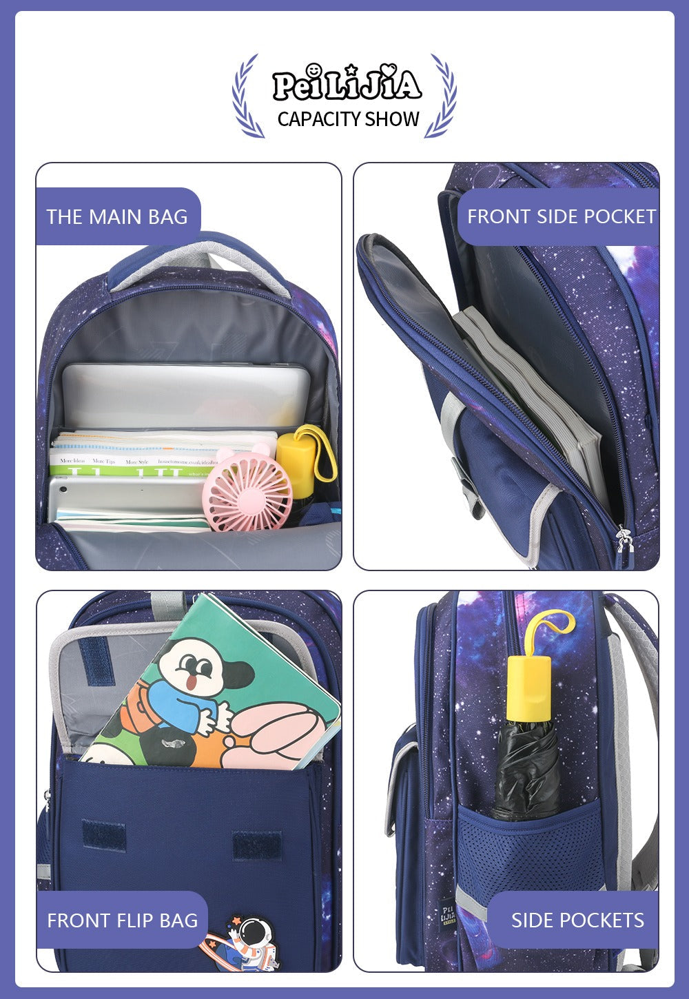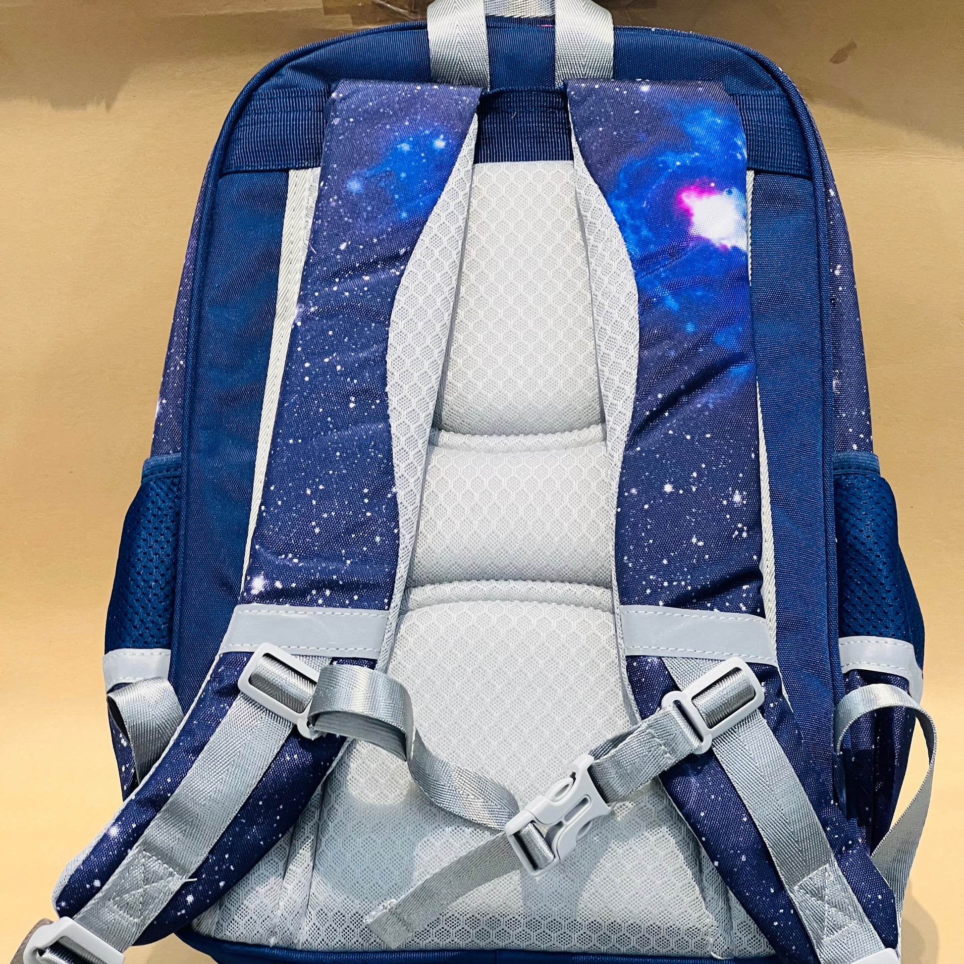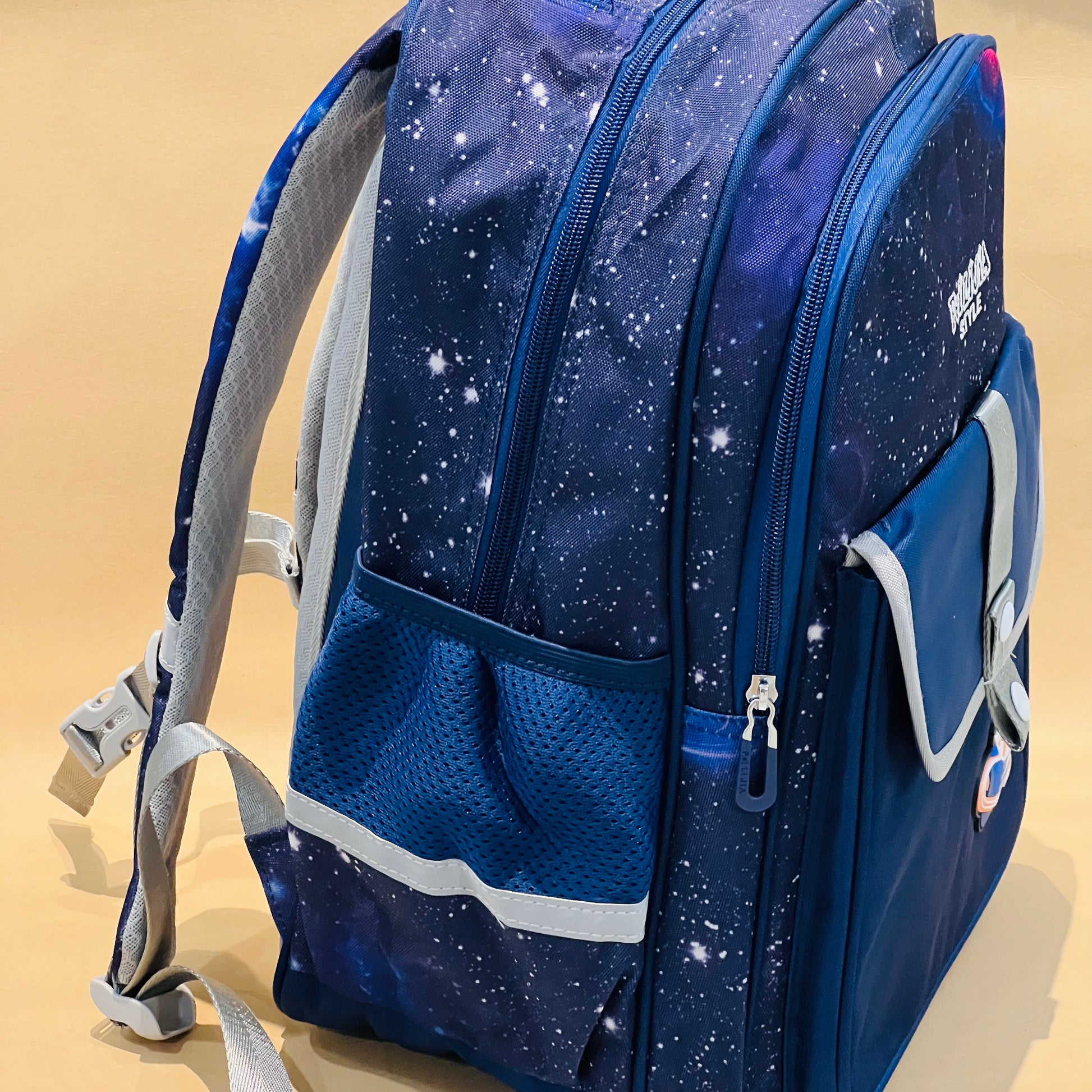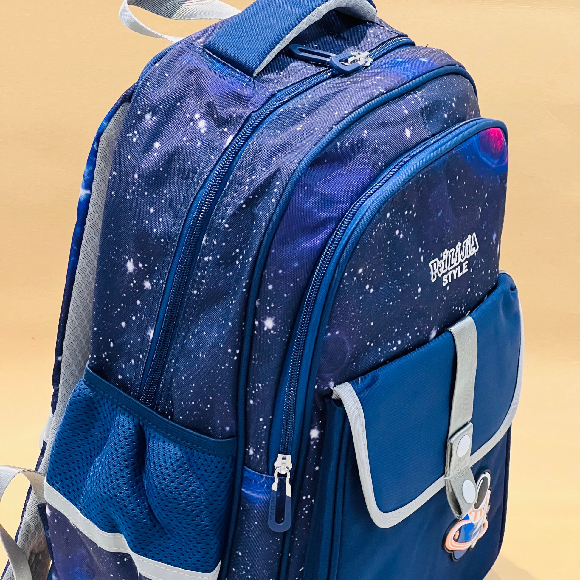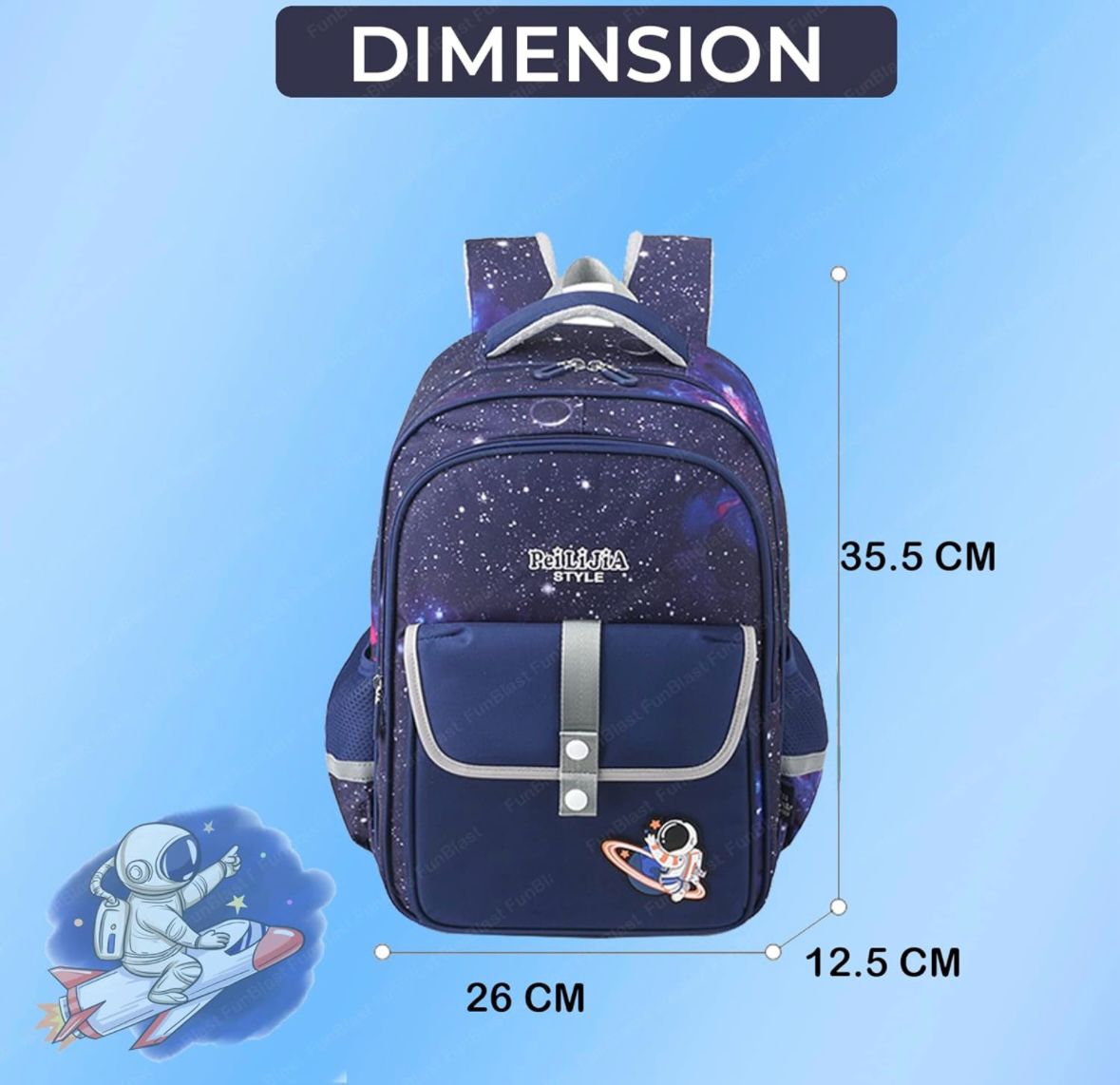 • Adorable Space Design with 1 Main Big Pocket, 1 Semi Pocket and 1 Front Flip with 2 Bottle Space, Amazing Breathable Backside and Shoulder Straps for Extra Comfort