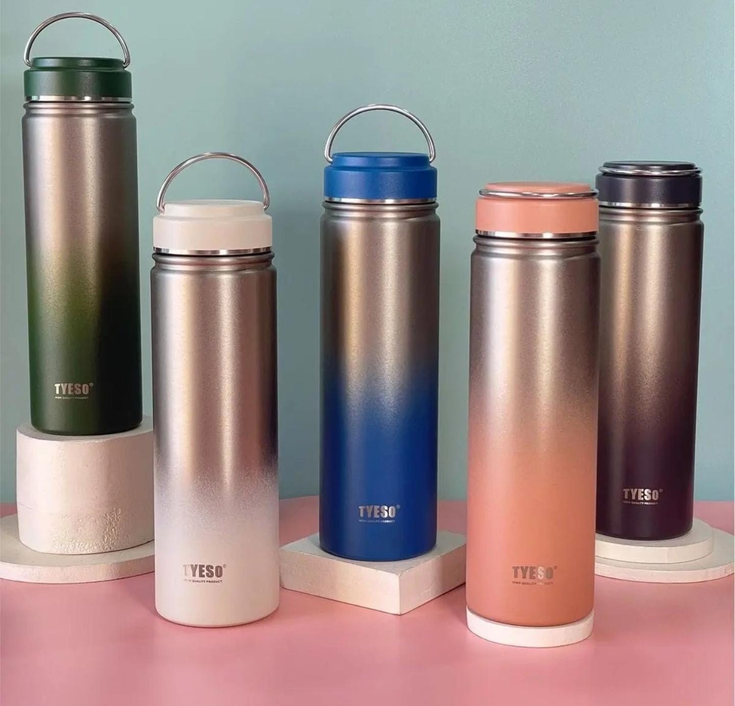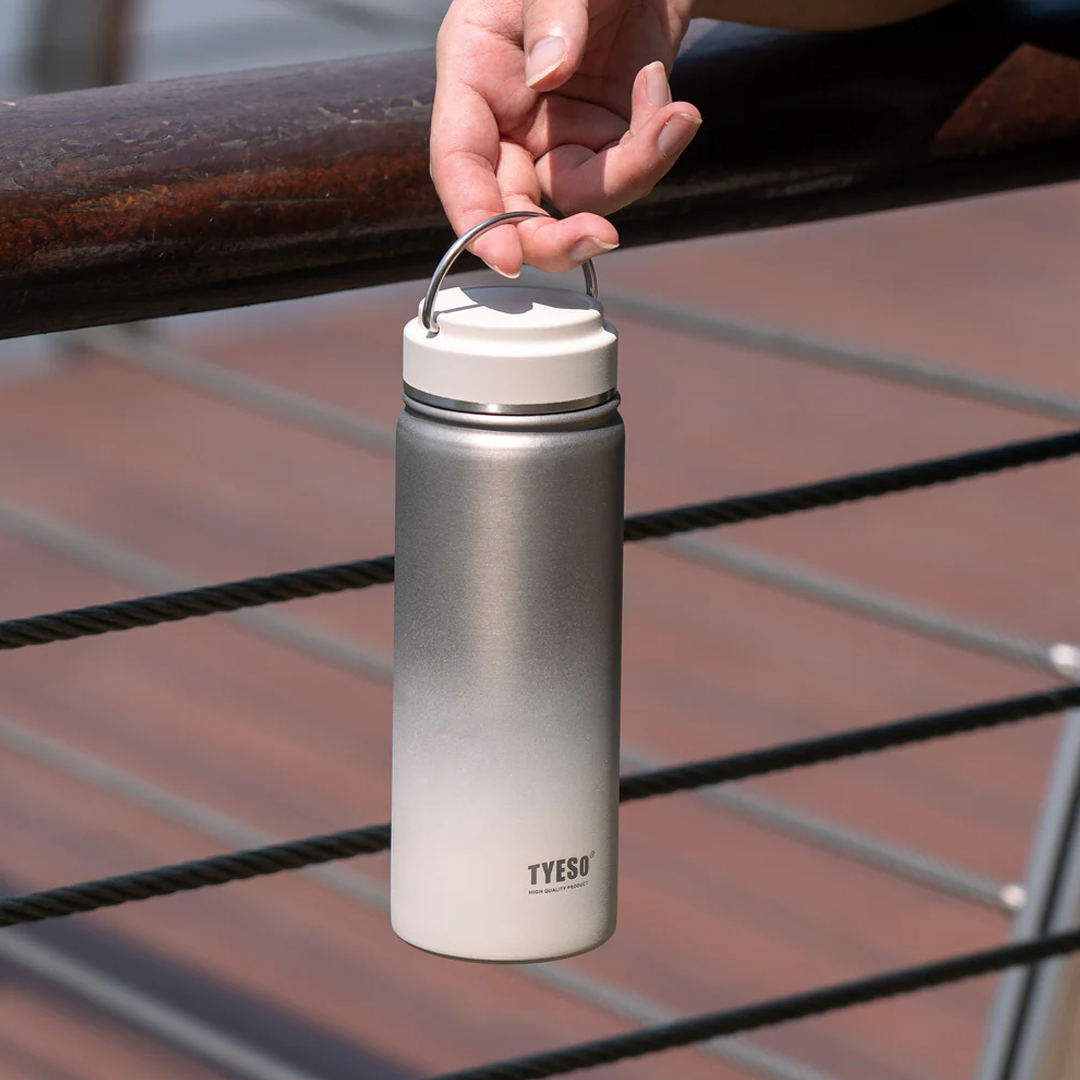 Stay hydrated in style with the Tyeso Silver Gradient Bottle, a perfect fusion of functionality and aesthetic appeal. Its sleek, slim body is paired with an eye-catching gradient finish, making it not only a reliable hydration solution but also a stylish accessory.