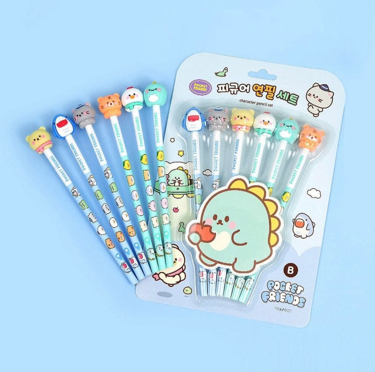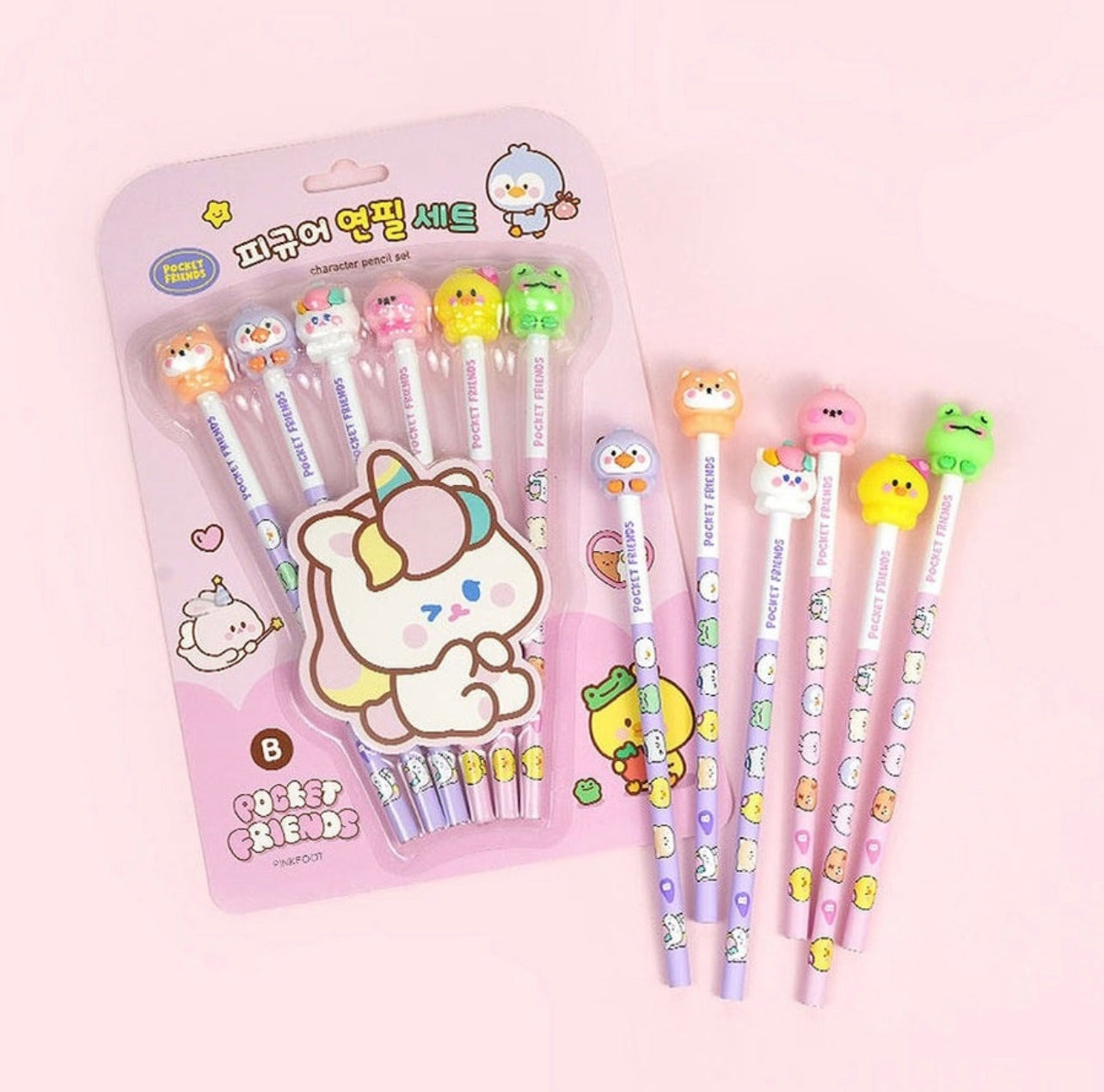 Charming Kawaii Baby Animal Design Toppers with Pencil - Set of 6