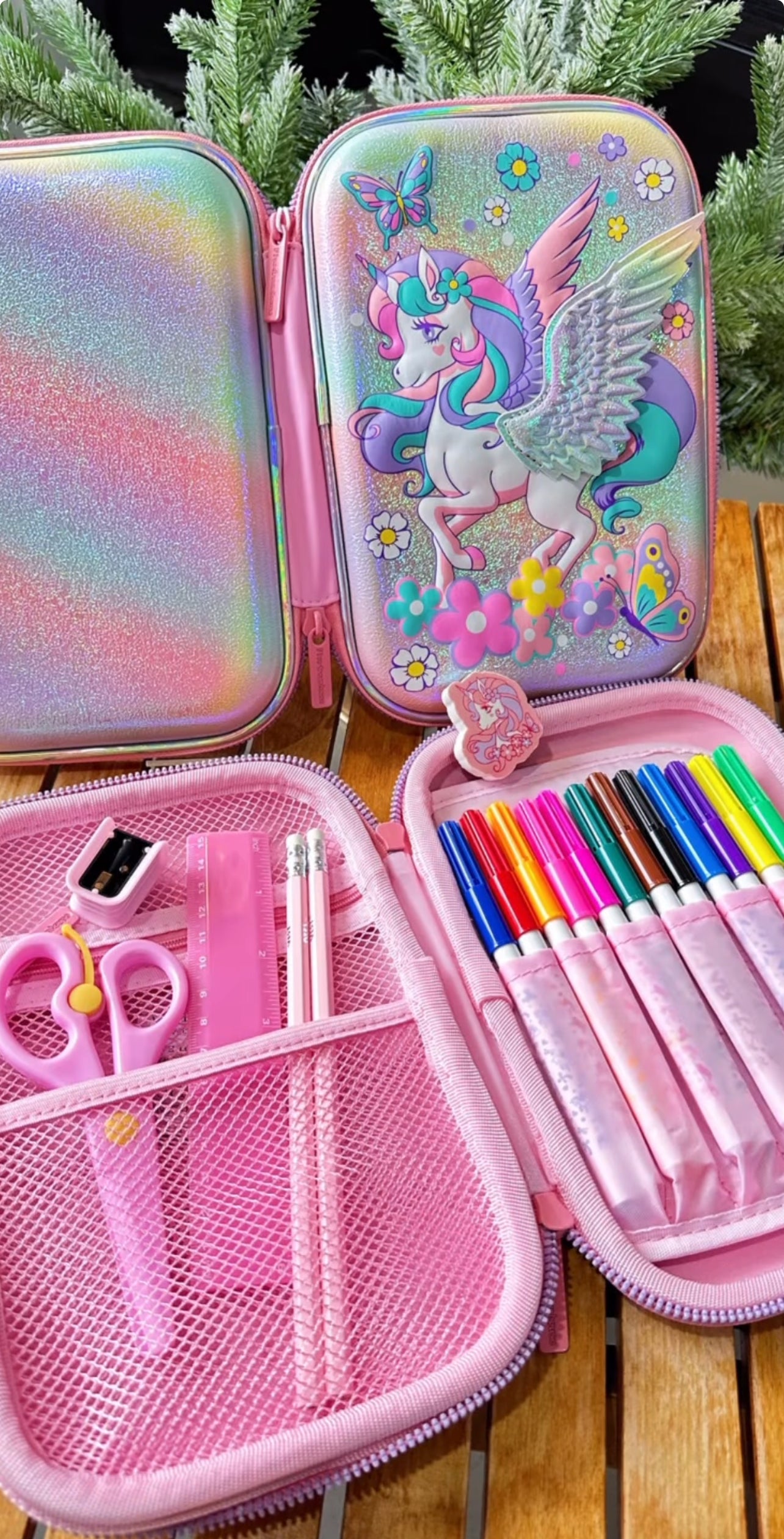 This Stylist carrying pencil case is made of durable and stylish EVA material, compressive, shockproof, waterproof, all-round protection of stationery. Each of cute pencil case comes with an embossed pattern on the front that gives a vivid look and make your kid happy.