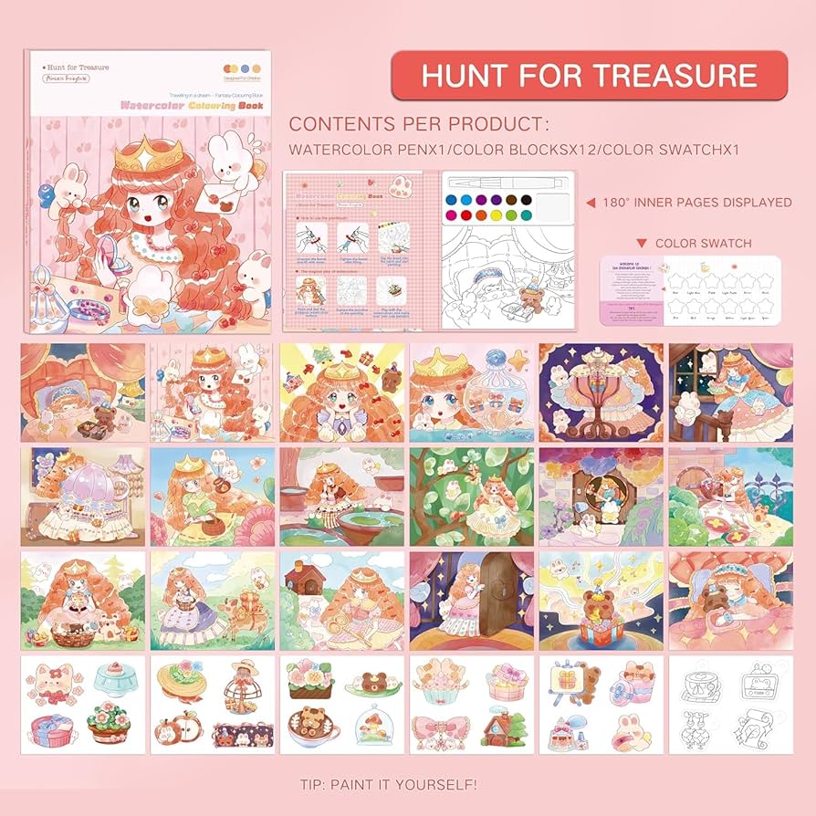 - Package Includes – 1 watercolor painting book set has includes - Solid Watercolor Paints x12, Doodle Paper x24, Paint Brush x1, Color Card Paper x1.